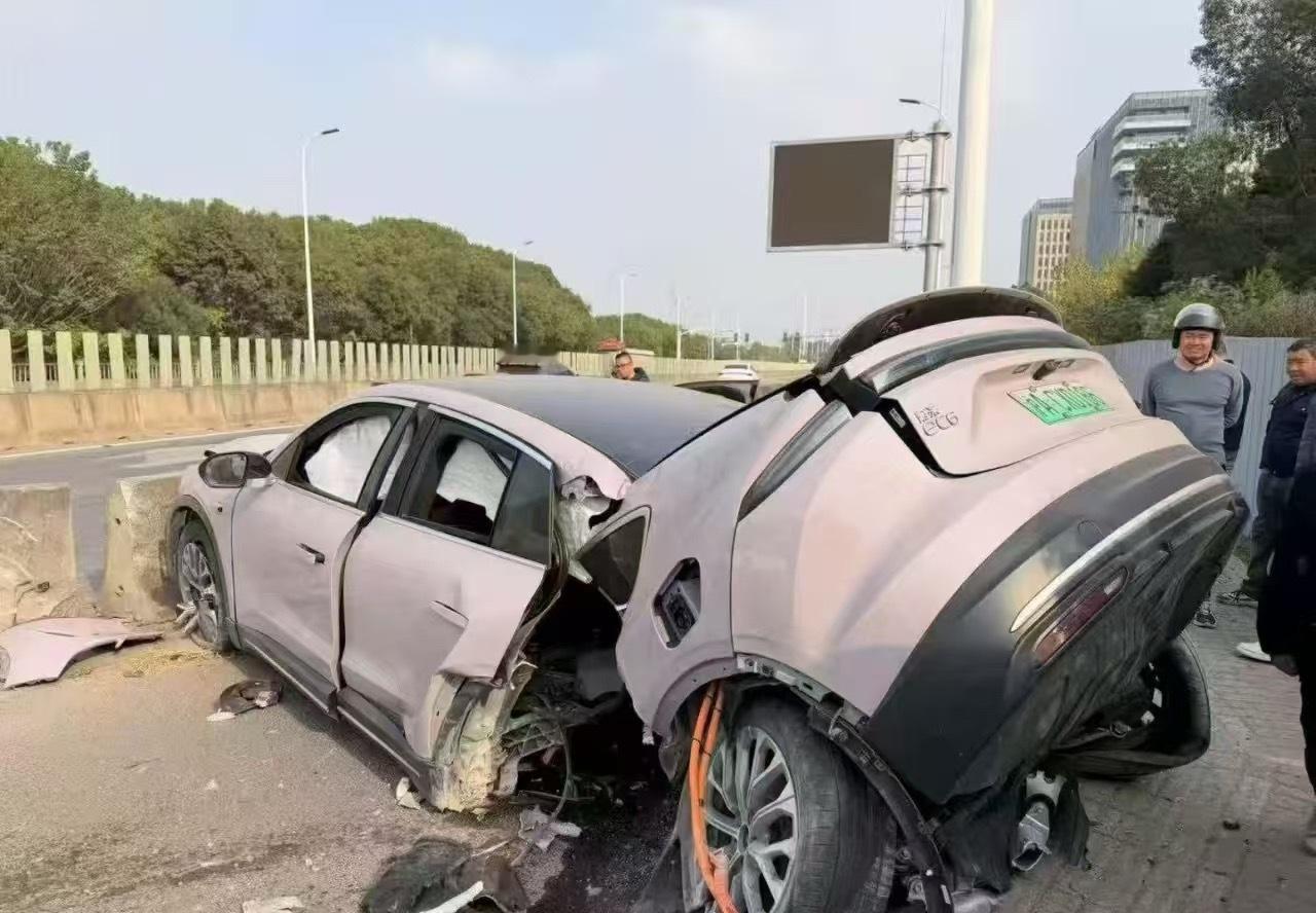 来自网友分享!一蔚来被拦腰折断,这样看图的话,车门正常打开,车主没事,车没发生自燃!也是不幸中的万幸,开车一定一定要小心啊!大v聊车