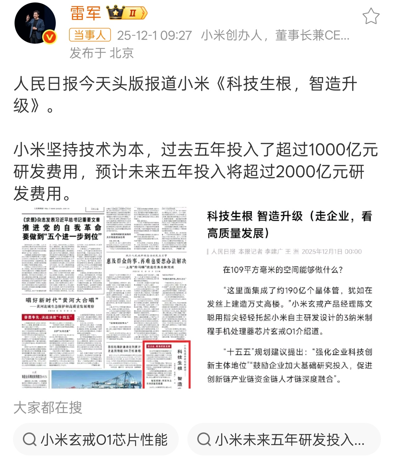 米司宁可拿两千亿去搞研发,都不肯给法务团队多加点辛苦费每年给法务团队弄一个亿奖励池,比清朗行动好使小米未来五年投入超2000亿研发费用