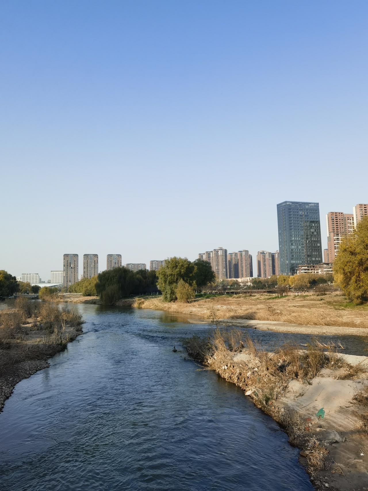 一张照片分享今日天气快看看你眼里的阳光下的浐河,河水不小