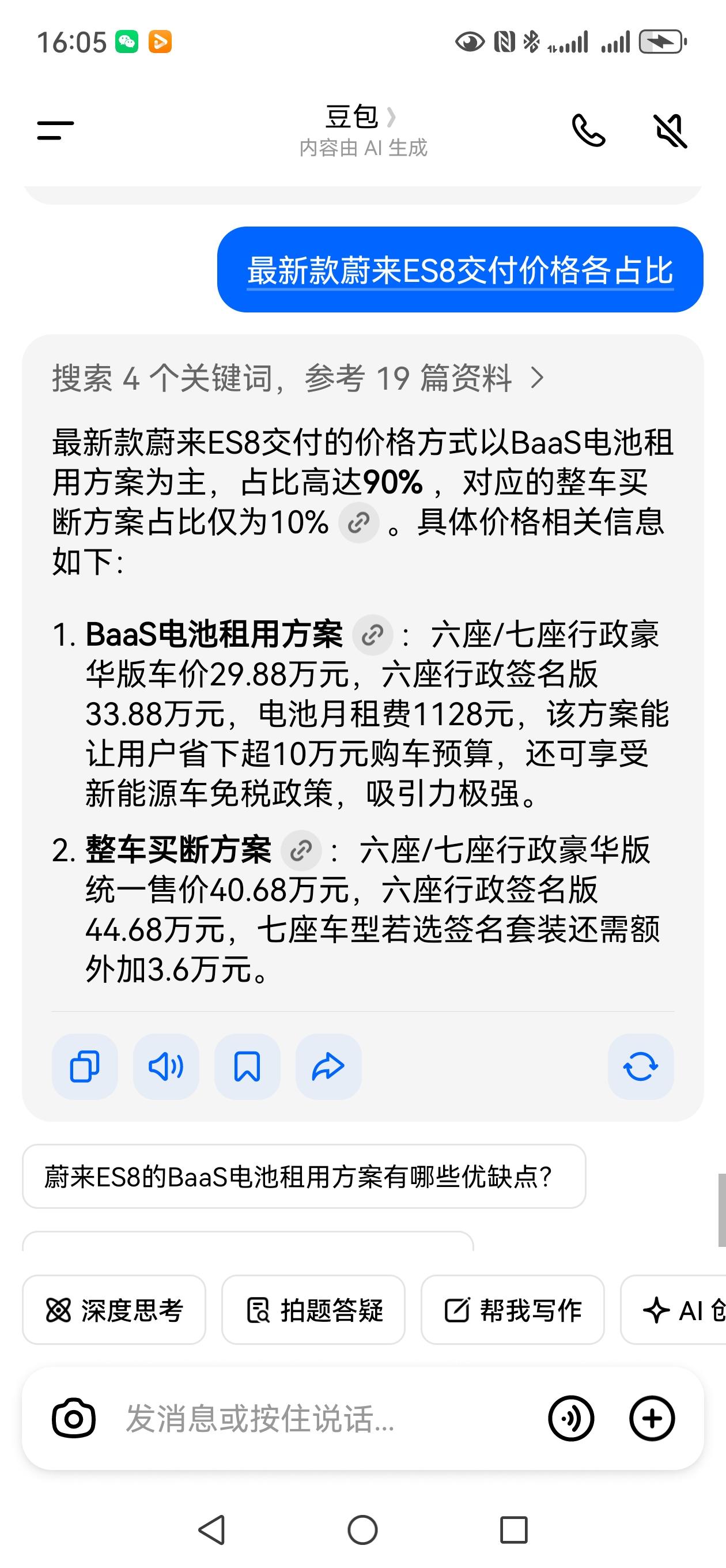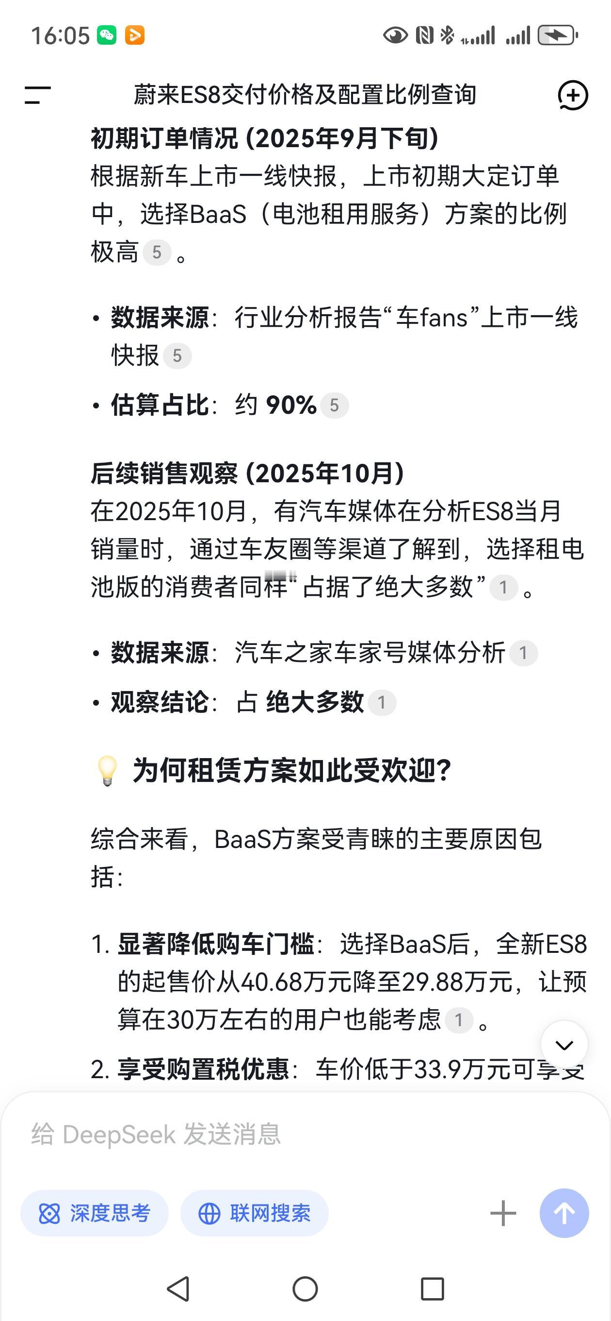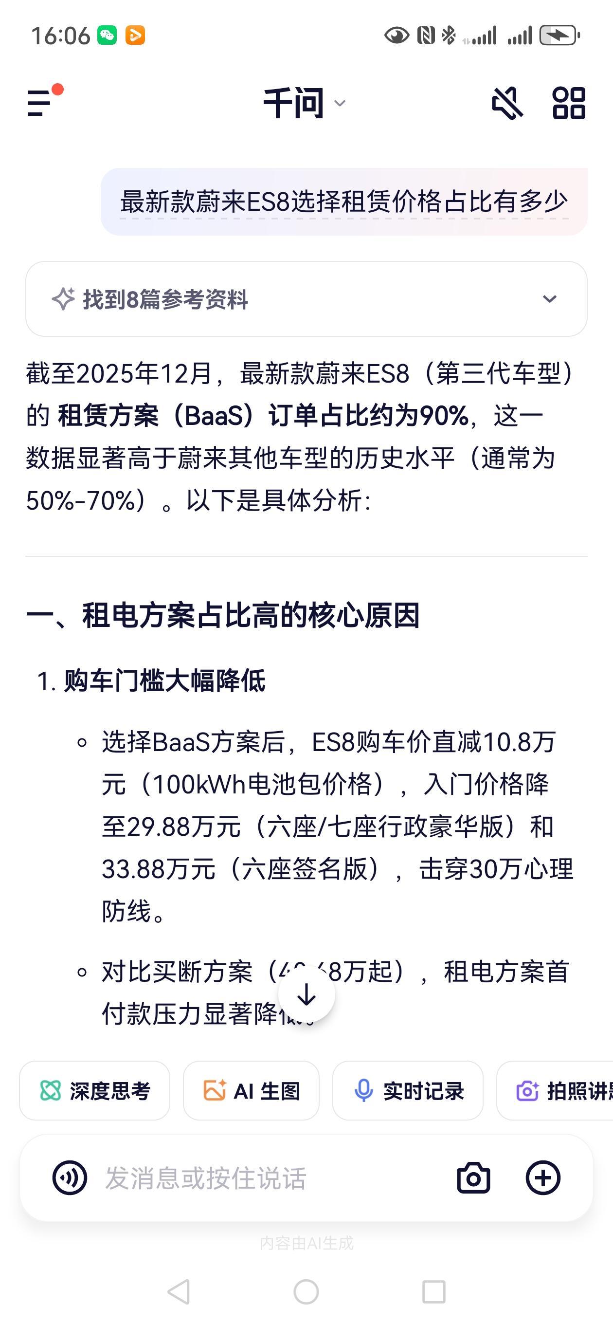 蔚来ES80,40万级别[what][what],是不是有点偷换概念啊,问了叶问/豆包/DS/,都是租赁占比90%,是不是应该就要按租赁后单车均价口径来才对啊[呲牙],因为那部分的钱💰用户还没给到蔚来,难道蔚来租赁电池公司付了吗,有些人会说同房子🏠分期一样,但我总觉得还是有区别的[捂脸]!不懂,有懂人说说,从另一方面也说明,性价比在谁身上都好用,这炮蔚来确实打赢了,但还要继续加电[比心][比心][赞][赞][赞]