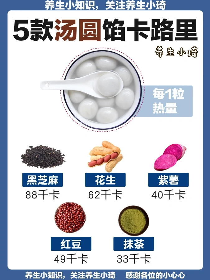 🌟今天(21日)是一年一度的冬至。 [哇R]在冬至这天,大家总会吃餐团年饭,而汤圆就是当中不可或缺的甜品,寓意著团圆平安。[赞R] [斜眼R]小琦在南方,习惯在冬至吃上一碗汤圆。你们那边是吃汤圆还是饺子呢?🙋 - 🔍汤圆馅热量对比(每粒热量) 黑芝麻(YYDS)[派对R]:88千卡[捂脸R] 花生:62千卡 紫薯:40千卡 红豆:49千卡 抹茶:33千卡 - 🔍饺子馅热量对比(每个热量) 猪肉芹菜:51千卡 胡萝卜:31千卡 素三鲜:48千卡 玉米猪肉:39千卡 韭菜鲜肉:50千卡 -