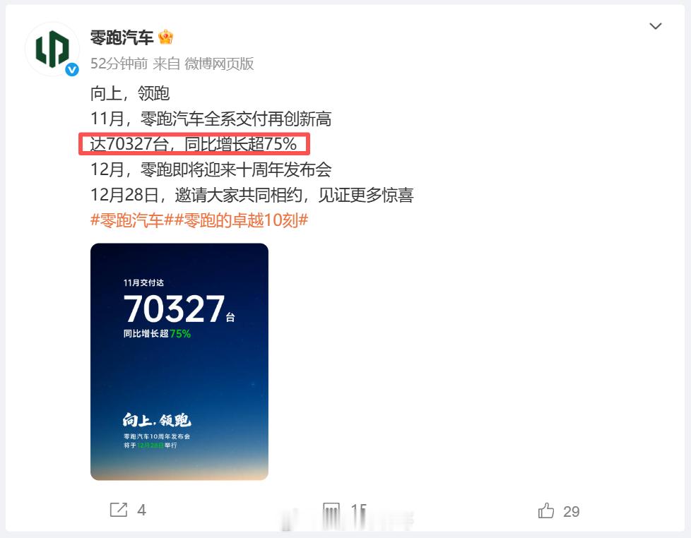 零跑表现非常强劲,是当前新能源车市场里很值得关注的新势力代表,零跑汽车11月全