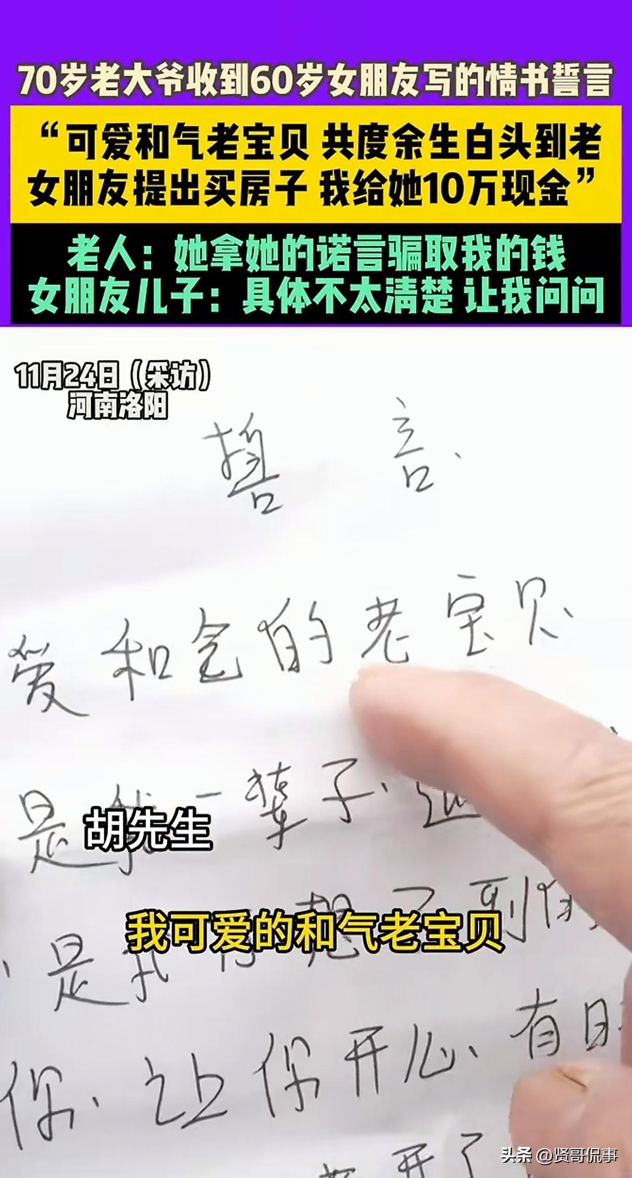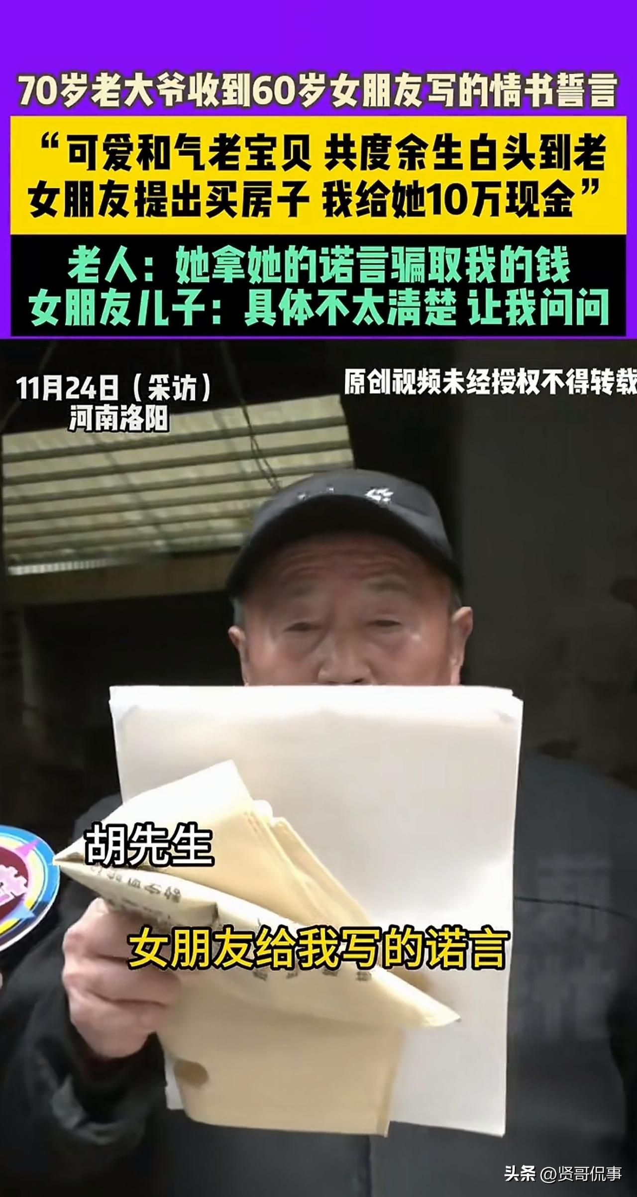 河南洛阳,一70岁大爷经人介绍,与一位60岁的女子陷入热恋。然而,还没过多久,女友便提出想买套房子,和大爷单独居住,享受二人世界。大爷听闻,心中满是欢喜,毫不犹豫地往女友卡里存了10万。可到最后,房子没买成,女友却拿着钱消失得无影无踪,大爷这才意识到自己被骗了。 据小莉帮忙报道,河南洛阳7旬的胡大爷,事业有成当了老板,日子过得也算滋润,可身边没个贴心人,总觉得少点滋味。 身边员工李某看在眼里,知道自家闺蜜也是单身,就热心牵线,想着给两人撮合在一起。 万万没想到,这一介绍,胡大爷竟真的动了心! 两人刚接触很顺利,女方温柔体贴,还特意向胡大爷写了封情书,字里行间全是爱意:“我可爱的老宝贝,真的爱你!” 看着这滚烫的文字,胡大爷心里乐开了花,觉得终于找到对的人,晚年有依靠了。 可谁曾想,甜蜜日子没过多久,女方就提出想买房,跟胡大爷单独住,过二人世界。 胡大爷一听,满心欢喜,觉得这是要好好过日子的架势,二话不说就给女方卡里转了10万,让她安心看房。 可钱转过去后,房子没动静,女方反而突然消失了,直接去了外地,还把胡大爷的联系方式全拉黑了! 胡大爷这才恍然大悟,原来自己遇到了骗子。 10万血汗钱就此打了水漂,胡大爷拿着昔日的情书,越看越觉得讽刺,直呼自己活得像个笑话。 就连牵线的员工李某也气不打一处来,又懊恼又愧疚,没想到自己的闺蜜竟能干出这种事。 其实,胡大爷的情况并非个例。往往对方会利用像胡大爷这类人急于找配偶的心情,用甜言蜜语进行哄骗,直到让他们心甘情愿地掏钱。 在目的得逞后,女方会删去所有联系方式玩消失,让大爷们无处可寻。 那么,这样的情况从法律角度该怎么评判呢? 1、胡大爷向女方支付的10万元应属于附条件赠与,胡大爷有权要求返还。 在女方提出买房两人单独居住,胡大爷遂给其转账了这10万元。 显示,这笔钱明显带着缔结婚姻、共同生活的期待。 现在女方拿了钱没买房,却拉黑胡大爷断了联系,相当于当初的赠与条件完全没实现。 在这种情况下,根据《民法典》规定,胡大爷可以通过民事诉讼要求女方返还这10万元。 2、胡大爷女友的行为还可能涉嫌刑事犯罪。 根据《刑法》规定,行为人以非法占有为目的,虚构事实或隐瞒真相,使被害人陷入错误的认识,被害人基于错误的认识处分财物,行为人取得财物的行为构成诈骗罪。 也就是说,如果警方调查后发现,女方从一开始就没和胡大爷真心处对象,写情书、提买房都是故意编造的谎言,目的就是为了骗取这10万元,那她的行为就符合诈骗罪的构成要件。 而10万元早已远超诈骗罪“数额较大”的标准,一旦查证属实,女方将承担刑事责任。 当然,女方确实有买房的想法,只是后来将钱挪作他用或别的什么原因,没买且无力返还才拉黑,那只能是民事纠纷,不构成刑事案件。 目前,胡大爷已经报警,案件正在进一步处理中。 其实这事儿说到底,不是黄昏恋不可信,而是找伴儿的时候一定要多留个心眼。 切勿被甜言蜜语冲昏头脑,尤其涉及大额钱财,哪怕对方说得再好听,也得跟子女商量商量,三思而行。 晚年亦有追求幸福的权利,但守护好自己的钱财、守住自己的权益,才是幸福的前提。 希望胡大爷能早日追回钱财,也希望所有老人都能擦亮眼睛,别让所谓的“黄昏恋”变成了“黄昏骗”,毁了本该安稳的晚年。 对此,你怎么看?欢迎大家在评论区留言。