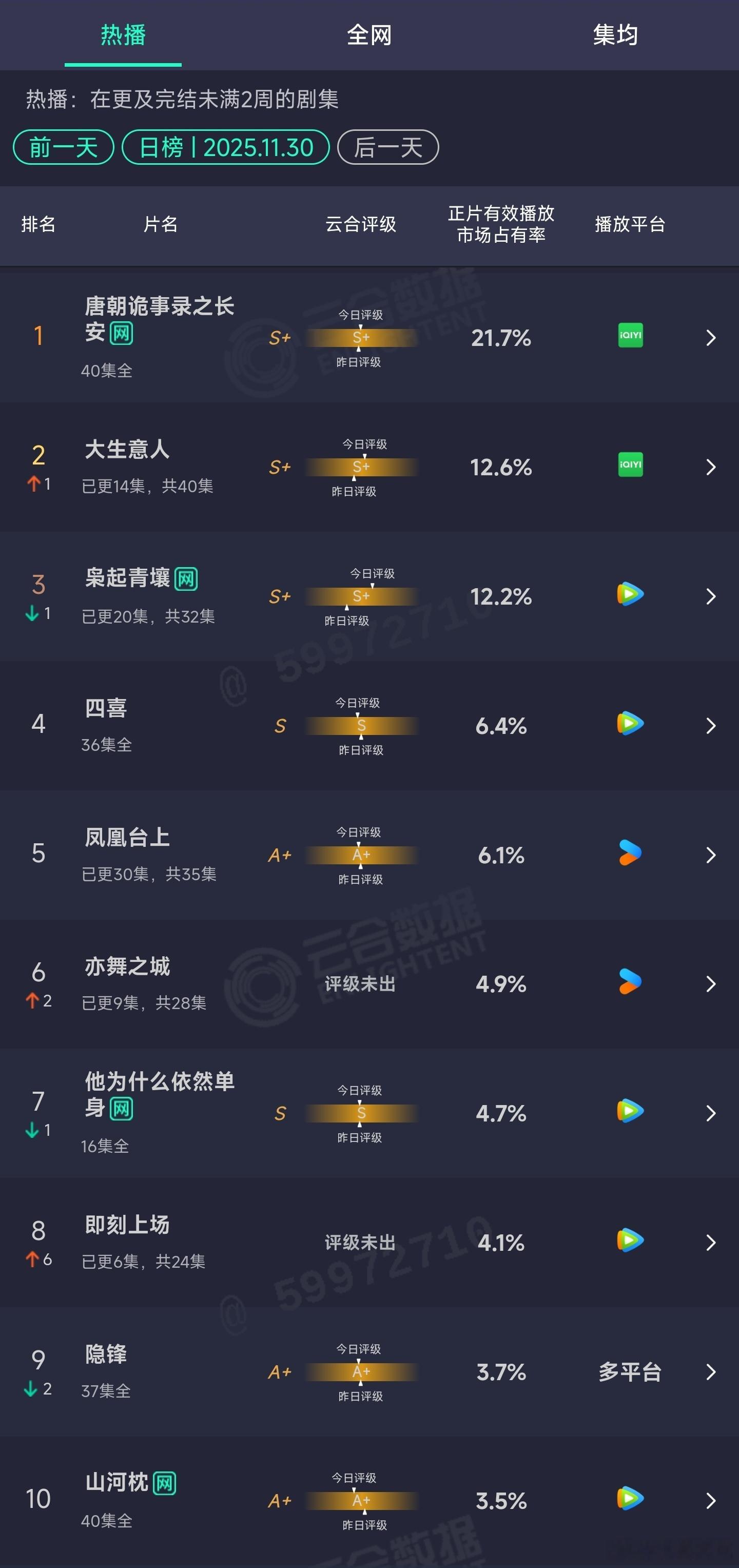 10.24云合:入青云登顶。暗河传10.7%水龙吟首日4.2%