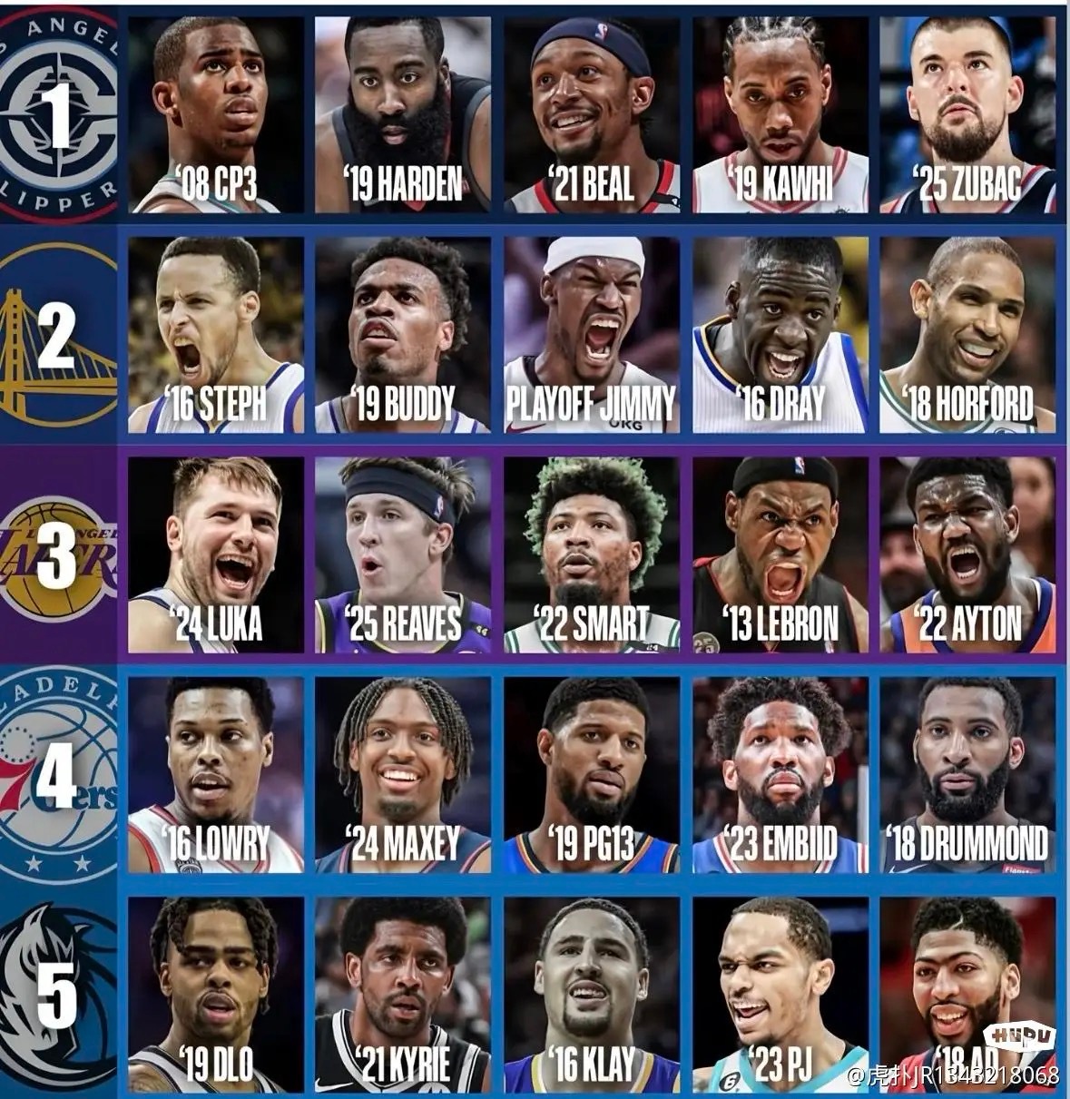 现役5个队,球员各取自己的巅峰年份。谁能夺冠?