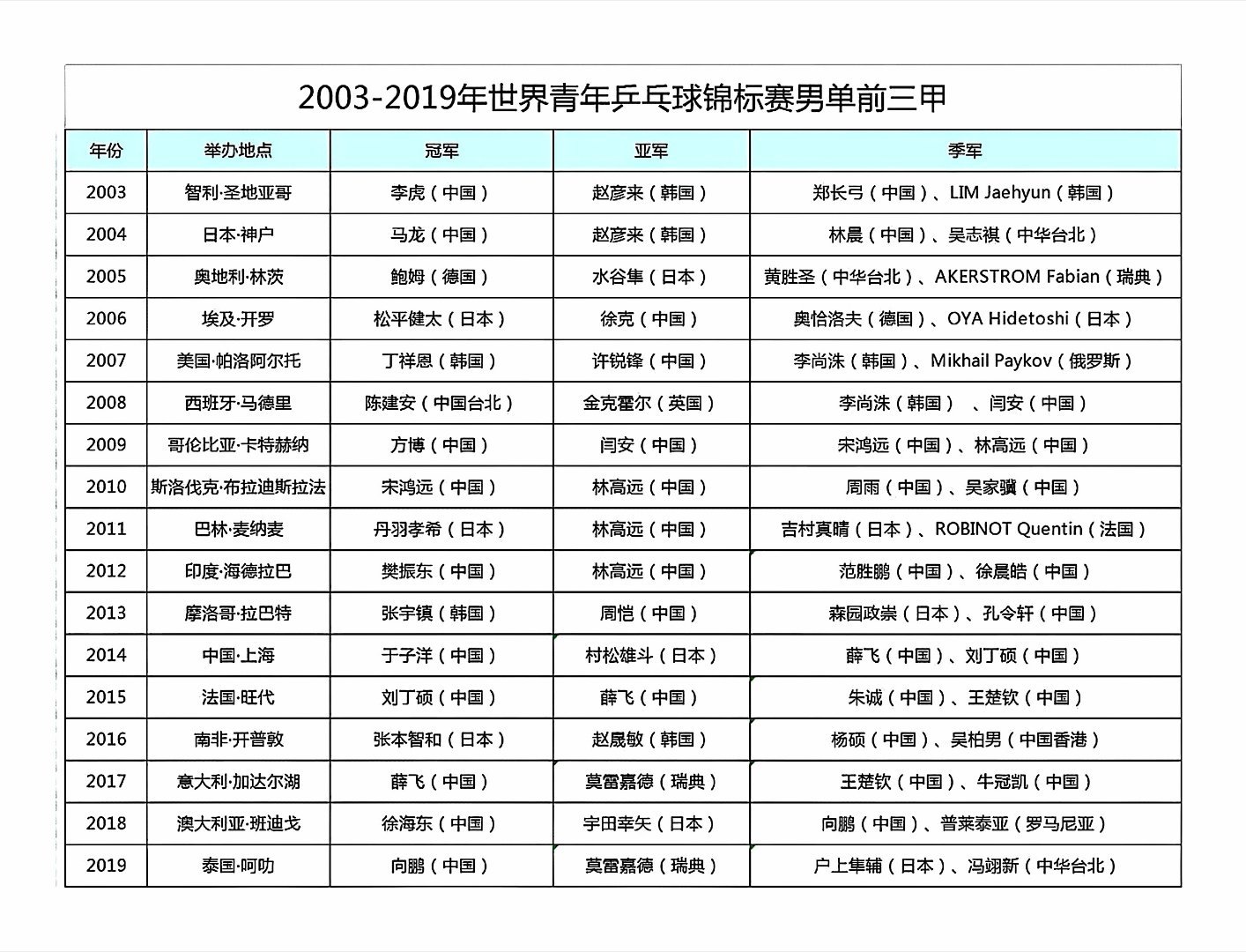 历届乒乓球世青赛冠亚季军(2020年未举行) 一代宗师樊振东 全国人民都想樊振东回来打球