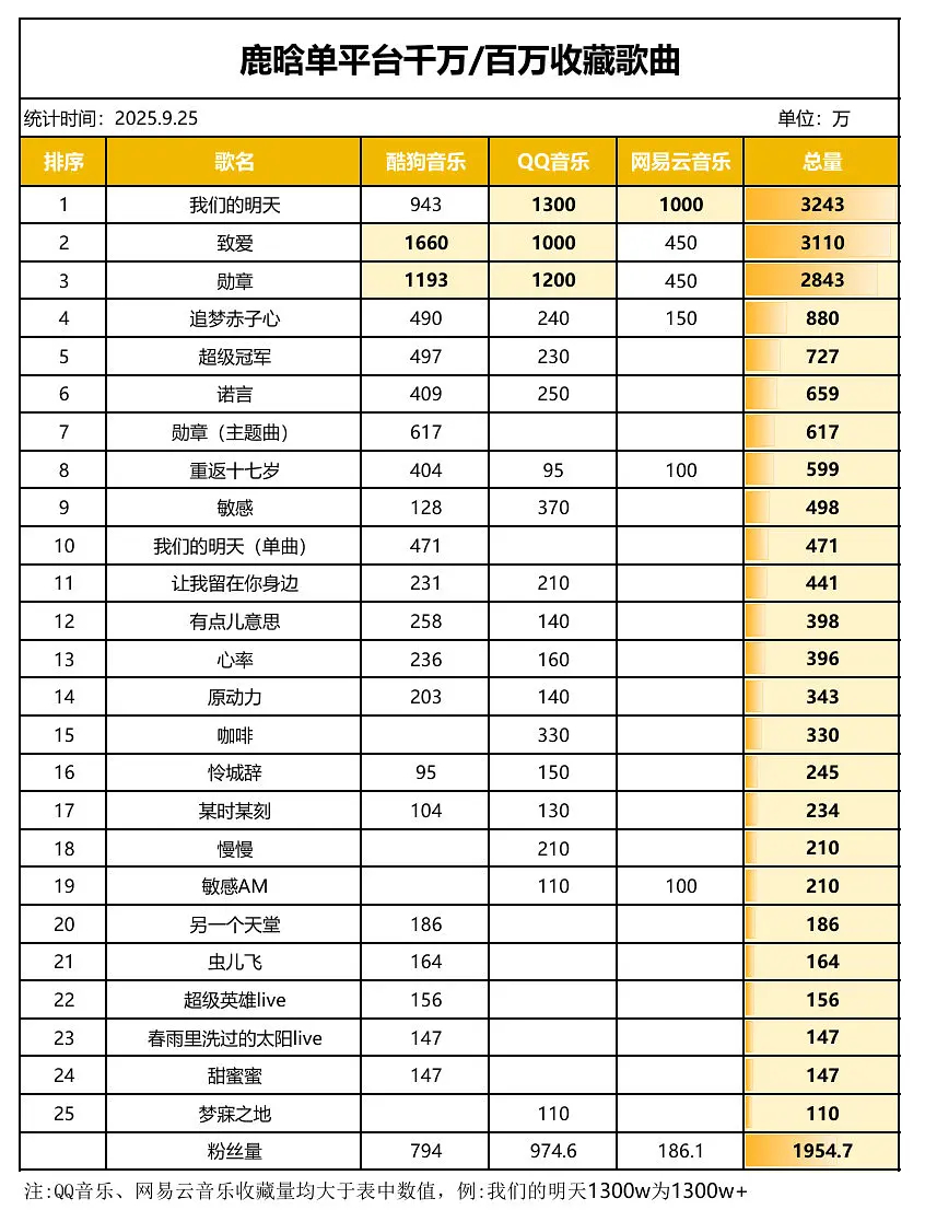鹿晗千万收藏的歌曲真多啊,四巡在全平台大爆
