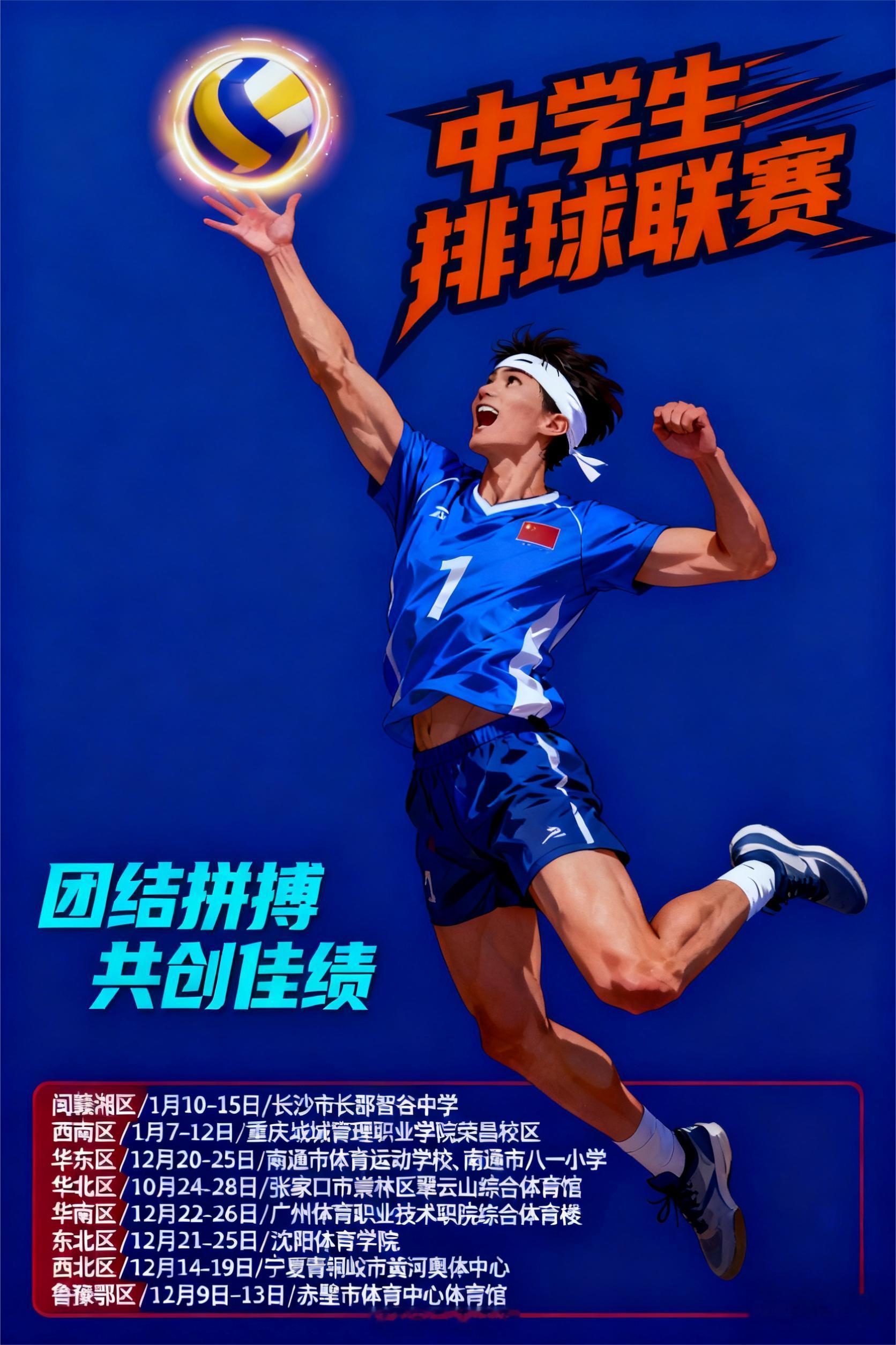 2025-2026中学生联赛区域总决赛来了,今年覆盖了除港澳台以外的全国所有省市,8大区域总决赛将分别于12月到1月中旬进行,举办地附近的小伙伴可以关注下排球少年们的表现! 排球少年中国女排中国男排中国女排