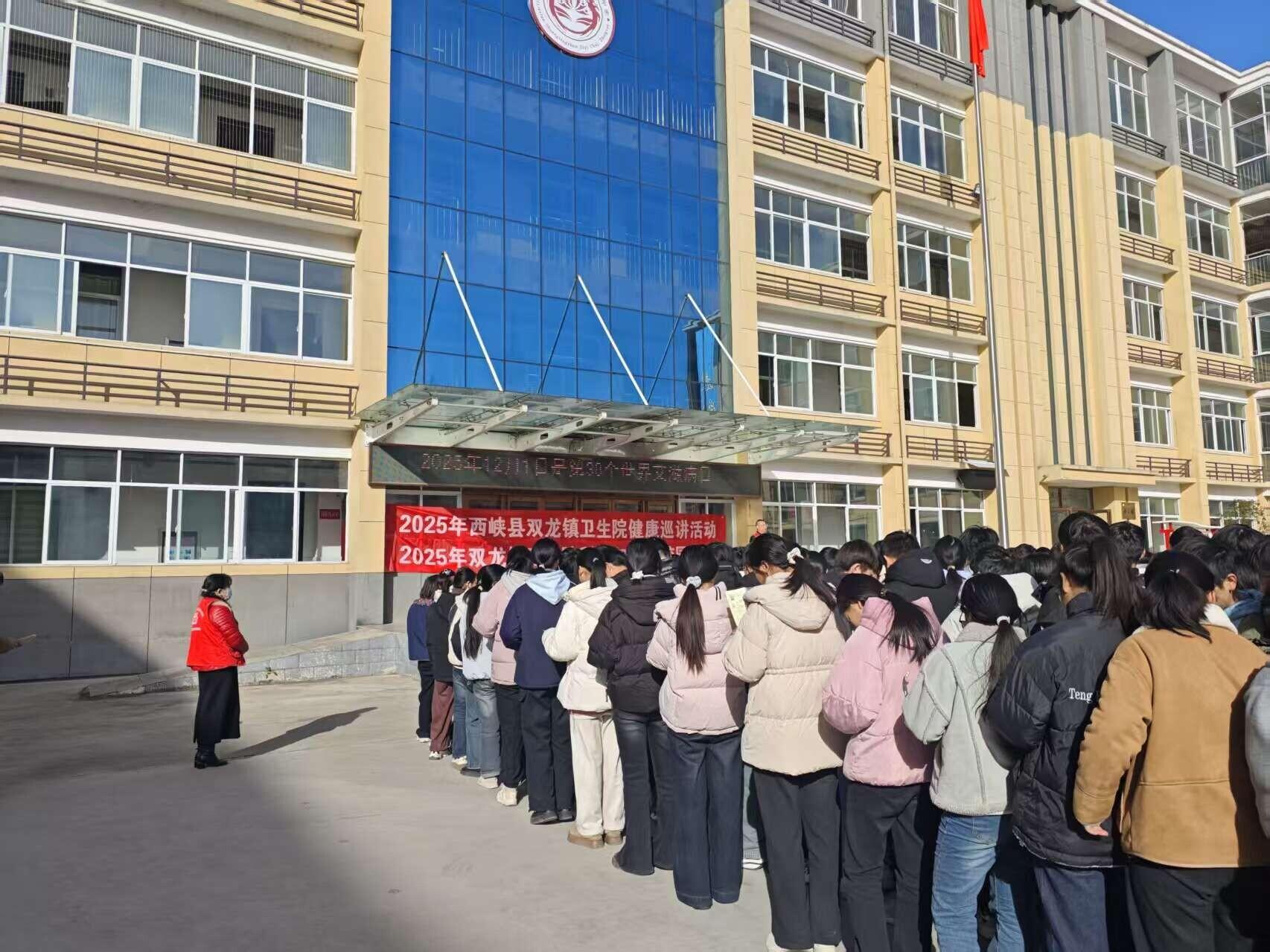 在第38个“世界艾滋病日”来临之际,为进一步深入宣传艾滋病防治知识和政策,提高全体师生对艾滋病的认识,掌握更多的艾滋病防治知识,营造健康和谐的校园环境。11月27日,由西峡县双龙镇卫生院开展以“携手抗艾,重在预防”为主题的预防艾滋病知识宣传活动在双龙一中举行。
