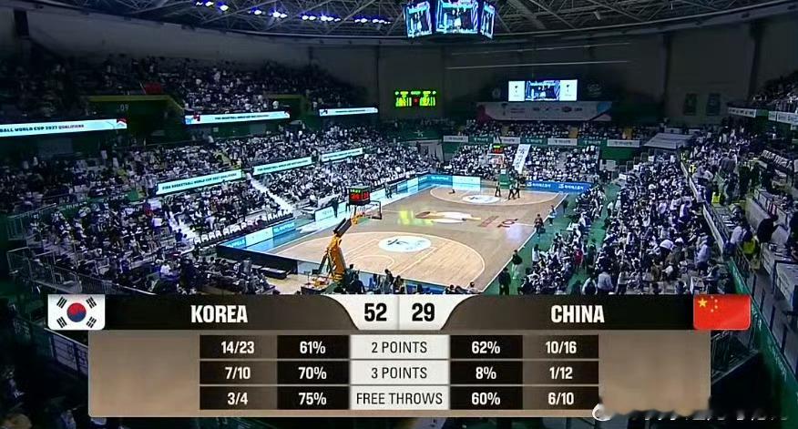 中国男篮vs韩国男篮 第一节只得到13分,落后韩国队15分,这是只少了一个赵睿的