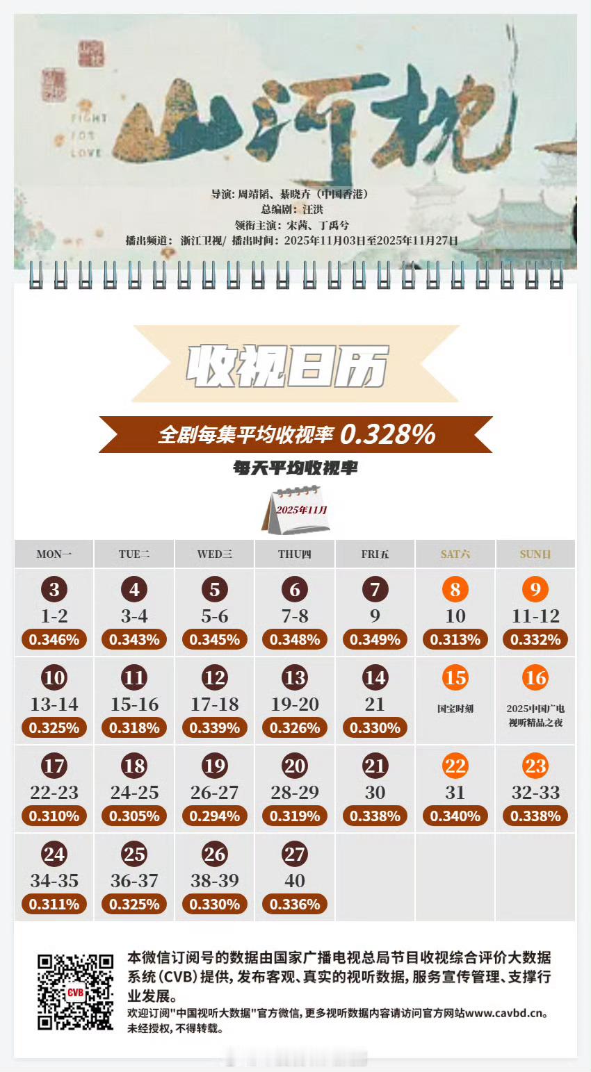 山河枕 cvb收视官方图来了!存图存图!全剧每集平均收视率0.328,暂列浙江卫视第二!宋茜一番女主收视再下一城,影视寒冬的情况下能播这么好真的难得,千句万句总结为一句宋茜🐂🍺。宋茜楚瑜宋茜山河枕
