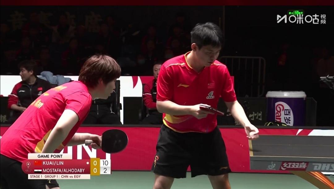 中国队8:0零封埃及队,两连胜!率先晋级第二阶段循环赛! 中国香港队明天还需加油! A组第二轮 中国队Vs埃及队 第一盘混双 林诗栋/蒯曼3:0(11-3;11-3;11-7)零封埃及穆斯塔法/玛尔娃。 第二盘女单 孙颖莎3:0(11-4;14-12;11-4)零封埃及马里亚姆 第三盘男单 王楚钦2:0(11-5;11-4)零封埃及阿齐兹。 现场“王楚钦,你最棒”!不绝于耳! 中国队8:0零封埃及队! 中国队两连胜率先晋级第二阶段循环赛! 埃及队1胜1负。 A组第二轮,另一场比赛。 中国香港队8:2胜智利队! 这场比赛,香港队大胆变阵,拆分黄金搭档、香港一哥黄镇廷/香港一姐杜凯琹为单打! 以确保对智利获胜! 香港队1胜1负! 明天第三轮比赛,中国香港队Vs埃及队,争夺第二个小组出线名额。 这是一场你争我夺的恶仗! 中国香港队加油!