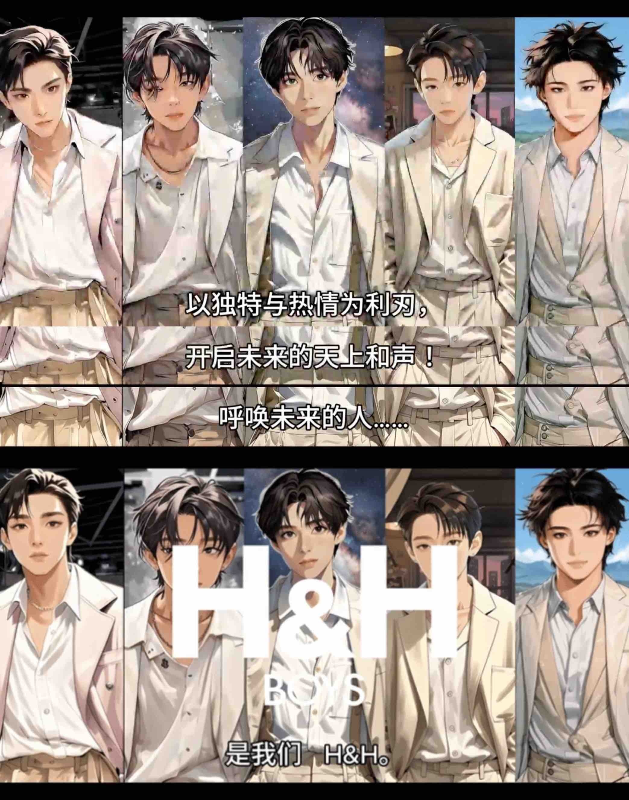 内娱男团来新人了 内娱男团赛道又添一组新人,五人组合H&HBOYS男团释出剪影预告,虚拟到现实的概念,将概“Heavenly Harmomy(治愈世界的和谐之音)”呈现,以音乐与拥抱抚慰当代青年的心灵,共同创造充满纯真希望与幸福的未来。期待五位少年 正式出道!