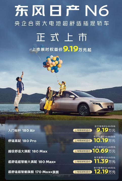央企合资插混N6上市9.19万起日产N6上市,作为一台合资插混中型车,这个价真