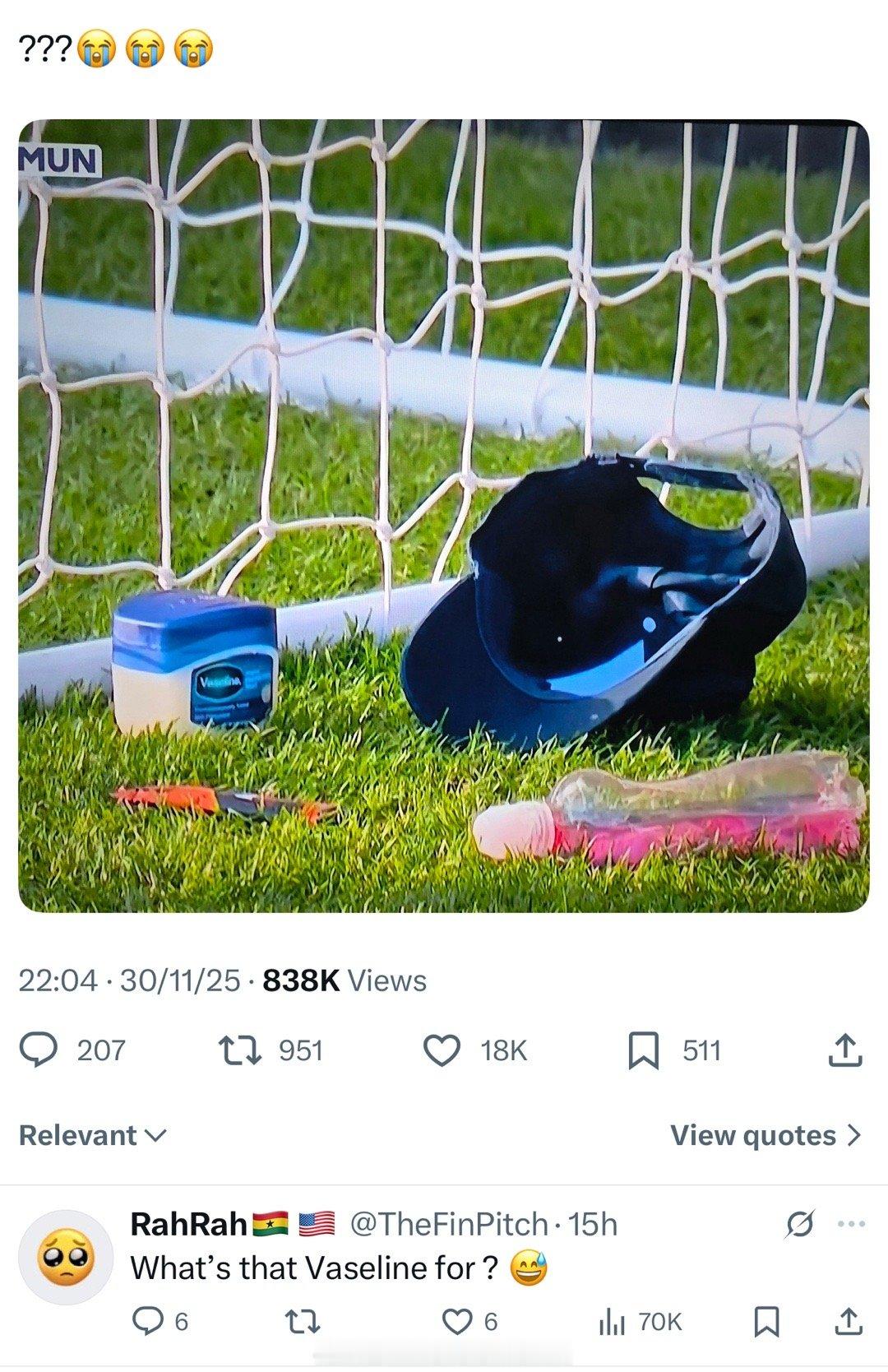 曼联对阵水晶宫的比赛镜头捕捉,前曼联青训、现水晶宫门将亨德森为什么放了一罐凡士林在球网边回复中球迷们的发散思维 一个走向了