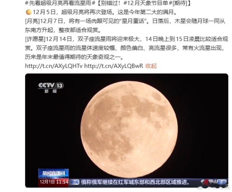 据央视新闻报道,超级月亮将于 12 月 5 日再次登场,这是今年第二大的满月,你