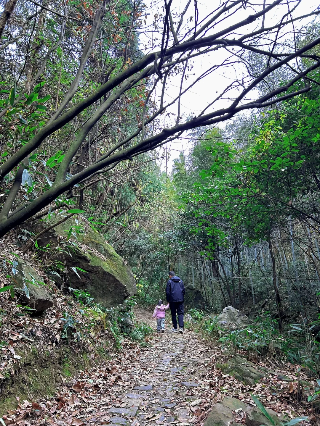 整条古道全长1到2公里🌸是安吉往德清方向走的古道,始建于宋朝。古道总体平缓,连29个月的女儿都能自己走到半身腰(当然是离不开美食的诱惑的👧🏻),徒步了1个小时就到达了山顶⛰️山顶是一座3层的亭子。到这里就可以结束徒步了,再往下走,要走到德清了🤣
