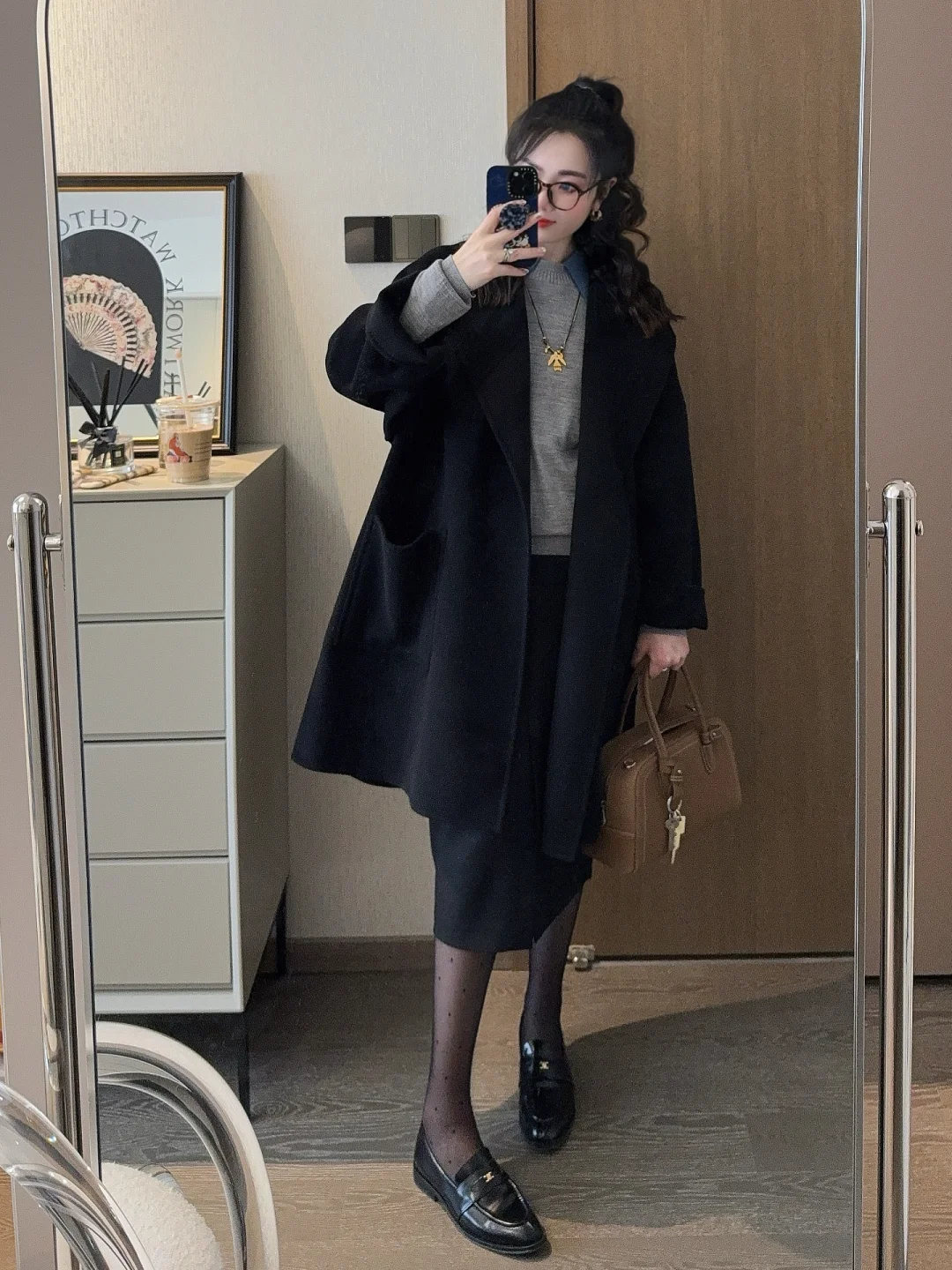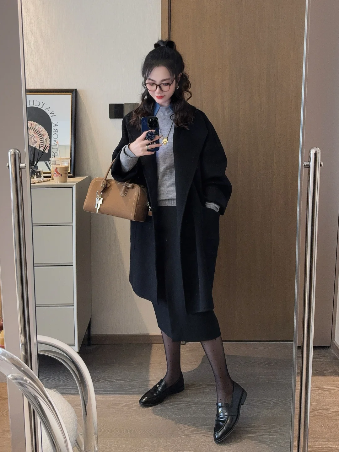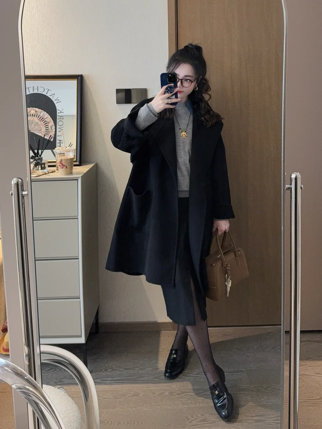 看明星、博主演绎黑色大衣氛围感穿搭黑色大衣穿搭灵感,冬日氛围感必不可...