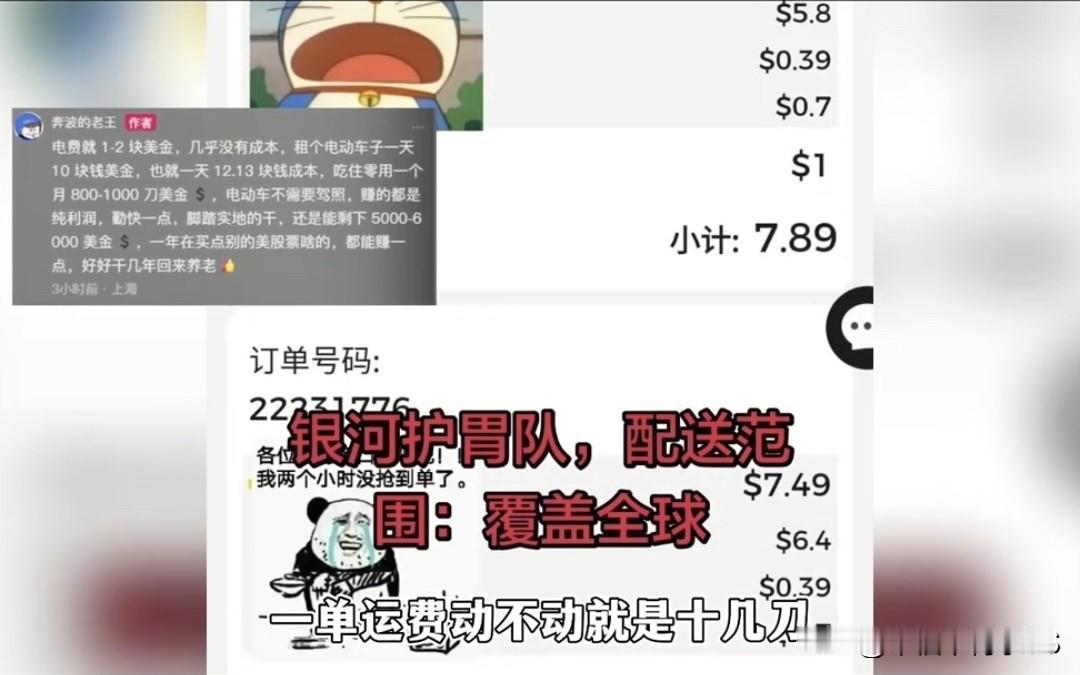 国内有个送外卖的老哥,居然把“饿了么”的业务干到洛杉矶去了! 这老哥之前在国内觉得外卖单价越来越低,就干脆把全套装备寄到美国,他骑着电动车挂着上海蓝牌,带着饿了么外卖箱,在洛杉矶的街上穿梭接单。 这老哥连英语都不会,但人家专门接当地华人的订单,接单软件都是中文的,一点不影响干活! 最让人羡慕的是,那边外卖单价高得离谱,一单运费随随便便就十几刀,送完还有顾客给小费。他每天接个十几单,就能赚二百刀一个月下来能挣6000刀。老哥说干几年回来直接养老,对此你怎么看?
