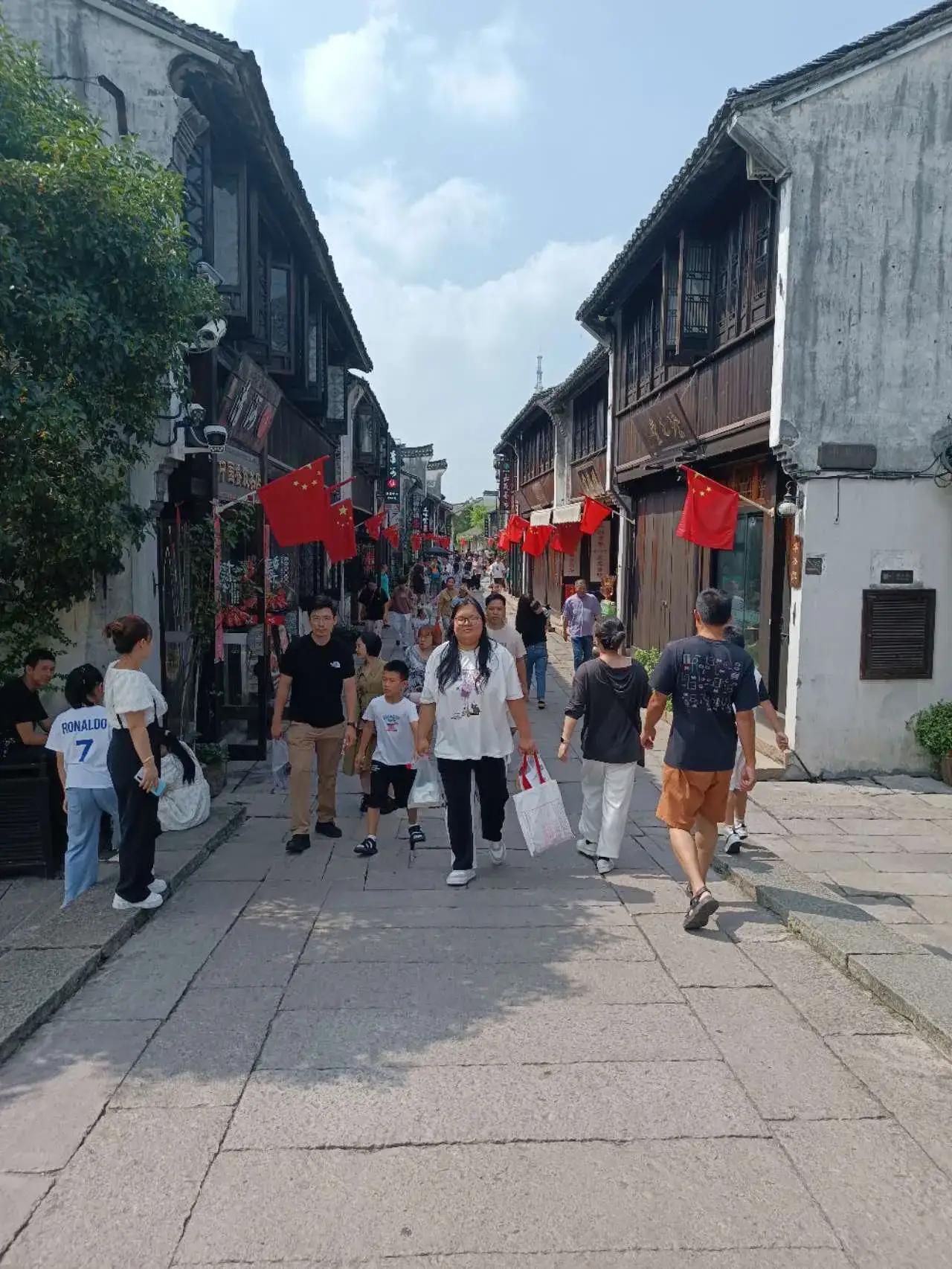 嘉兴相对杭州而言,马路还是比较安静的,尤其是电动车没有人摁铃声不断,不像杭州玩命的打铃打的你耳朵生疼,也许是生活节奏慢吧所以才从容不迫。 中午时分来到嘉兴历史街区,在江南外婆桥吃了午饭。