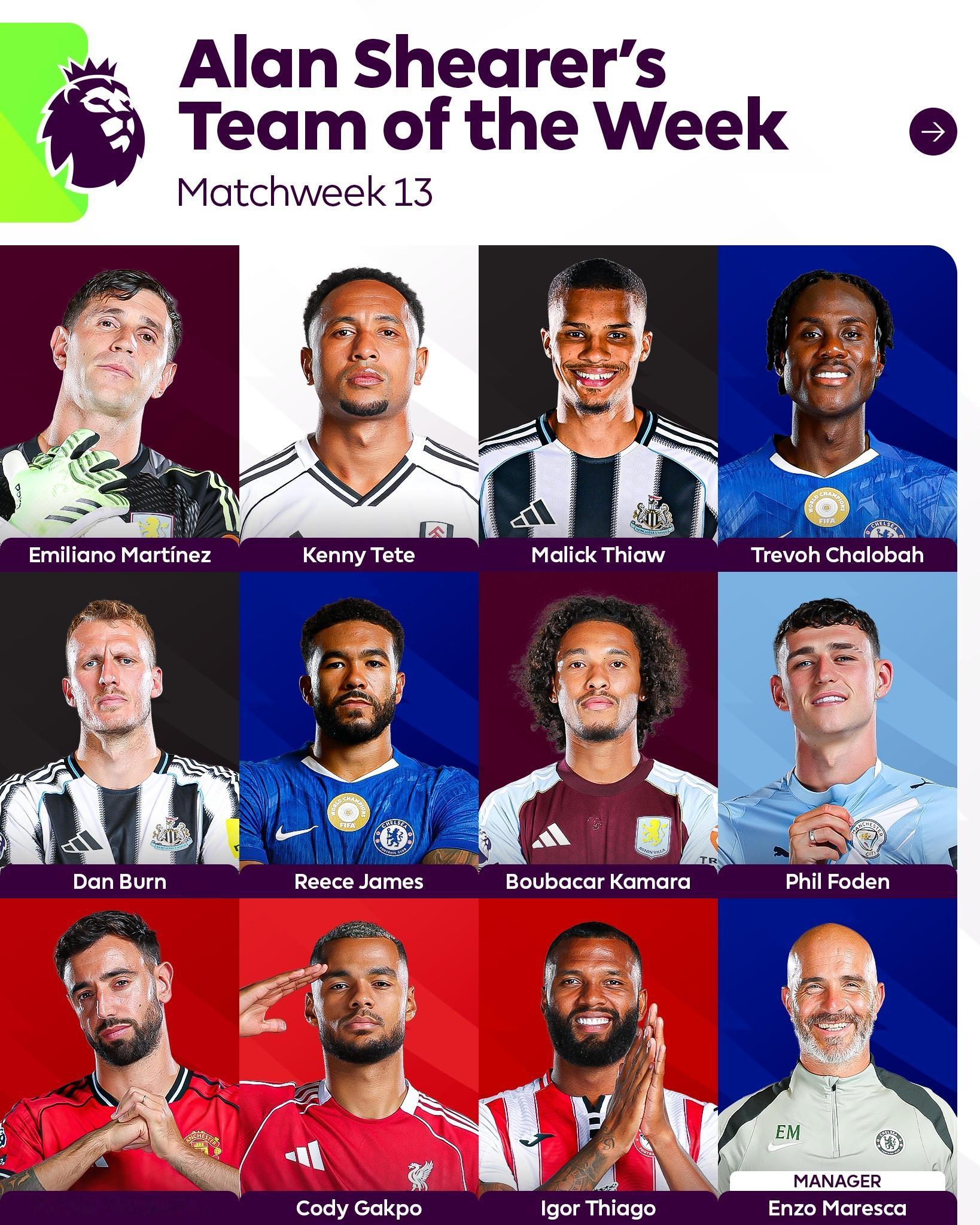 【官方】 英超 2025-26赛季英格兰🏴足球超级联赛第13轮最佳阵容。