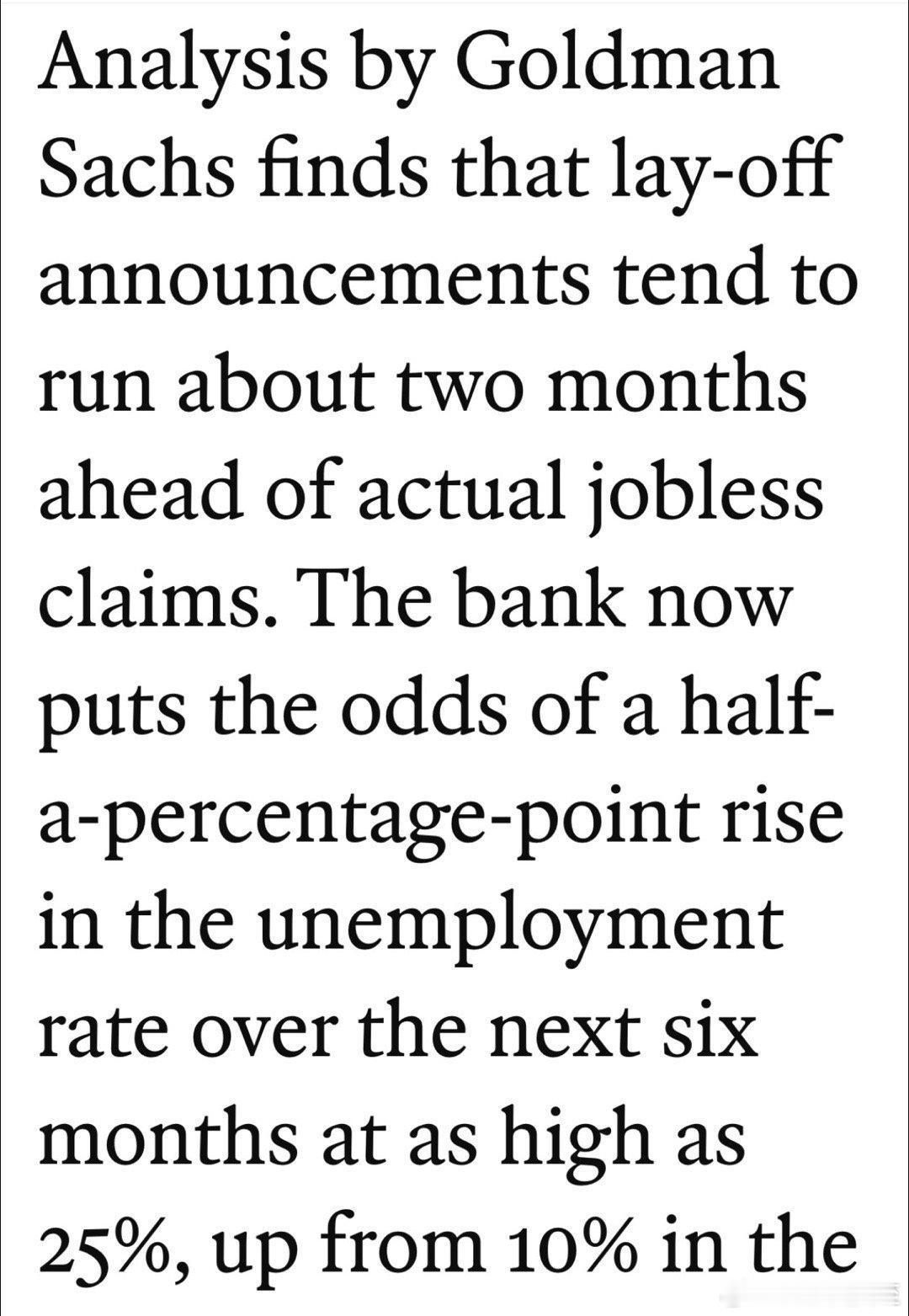 高盛研究发现:企业“宣布裁员”体现到“申领失业金”人数增加,大约需要两个月明年美国失业率上升0.5%的概率,目前25%左右 九月官方失业率,是4.4%,十月不公布,十一月还没有