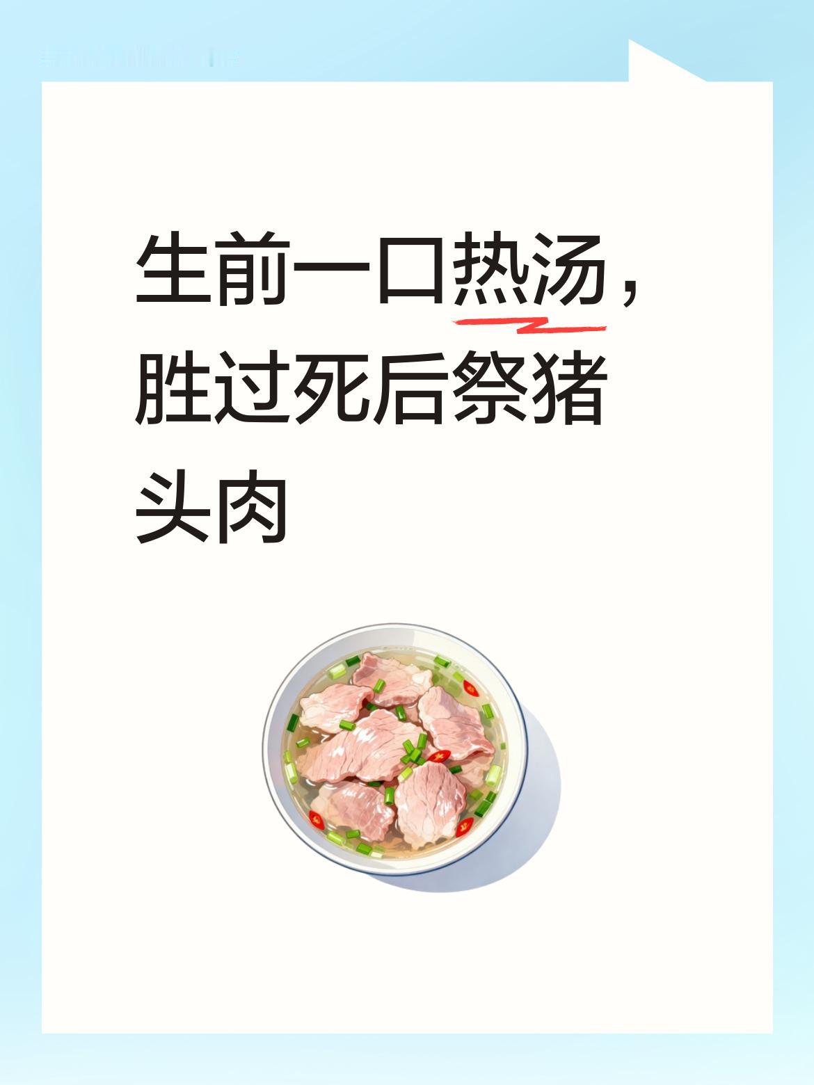 挺好的,生前能喝上一口热汤,得到实打实的关怀与照料,比死后再祭上再丰盛的猪头肉强