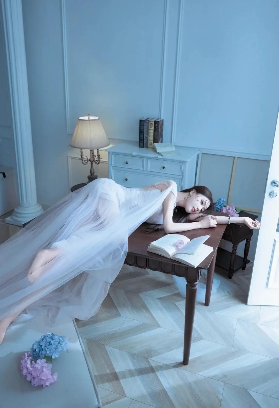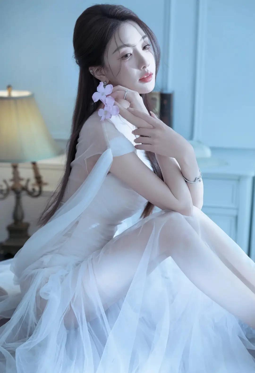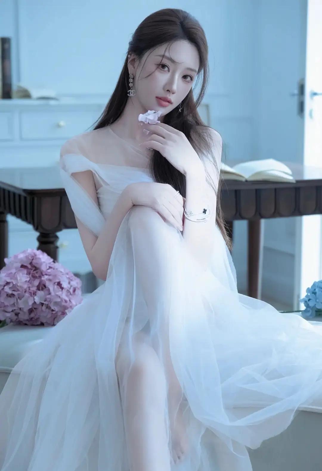 午后的阳光斜斜地穿过薄纱窗帘,在米白色墙面上晕染出朦胧的光斑。苏念端坐在丝绒扶手椅上,象牙白真丝长裙垂落如月光织就的瀑布,裙摆处手工刺绣的铃兰暗纹在光线流转间若隐若现。她微微侧首时,及腰的乌发在肩头漾开墨色涟漪,发丝间藏着的茉莉精油气息与室内若有若无的白茶香氛悄然相遇。 "这束光来得正好。"她抬手整理耳际碎发,腕间鎏金手链忽然在阳光下苏醒。链坠是朵永不凋谢的玫瑰,花瓣上凝结的晨露实则是镶嵌其间的碎钻,此刻正将斜射的光线折射成七彩虹霓,在素色墙面上绘出瞬息万变的抽象画。当目光掠过无名指上的铂金素圈,戒圈内侧镌刻的纪念日忽然变得灼热——那是去年深秋在京都琉璃光院,枫叶飘落茶盏时定格的永恒。 背景墙的莫兰迪色块开始流动,将整个空间晕染成水彩画。苏念起身时裙裾掠过波斯地毯,惊醒了沉睡在经纬间的古老传说。角落里的白瓷花瓶微微颤动,三支粉色郁金香忽然舒展花瓣,花蕊间渗出的蜜香与裙摆的铃兰刺绣完成一场跨物种的私语。她忽然听见时光褶皱里的回响:二十年前的春日午后,母亲穿着同色系旗袍坐在老洋房飘窗边,胸前的翡翠胸针与此刻她颈间的花朵吊坠在时空中遥相呼应。 当云层遮住太阳的刹那,室内光线忽然变得暧昧。苏念赤足踩过冰凉的大理石地面,足踝处的银链在阴影中泛起微光。镜面装饰墙突然映出平行时空:穿同款白裙的少女正在美术馆临摹莫奈的睡莲,她腕间的古董怀表与苏念的手链同时泛起幽蓝光芒。此刻两个时空的铃兰暗纹开始生长,藤蔓穿透镜面缠绕在一起,在现实与虚幻之间架起虹桥。 暮色漫入窗棂时,苏念将铂金戒指调整了十五度。这个角度恰好能让最后一缕夕阳穿过戒圈,在墙面投下完美的光轮。当她的身影与逐渐黯淡的光斑完全重叠,整袭白裙突然泛起珍珠母贝的光泽,宛如月光女神褪下人间的衣裳。此刻墙角的郁金香悄然绽放,花瓣坠地的声响惊醒了时空迷梦——那些流转的光影、暗涌的芬芳与无声的优雅,都在夜色降临前凝结成永恒的诗行。