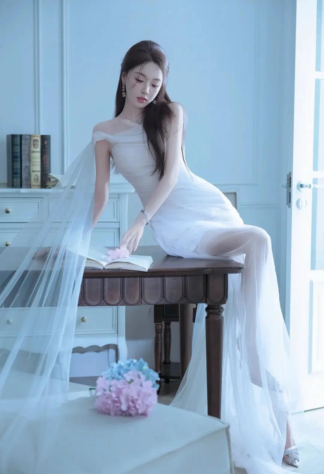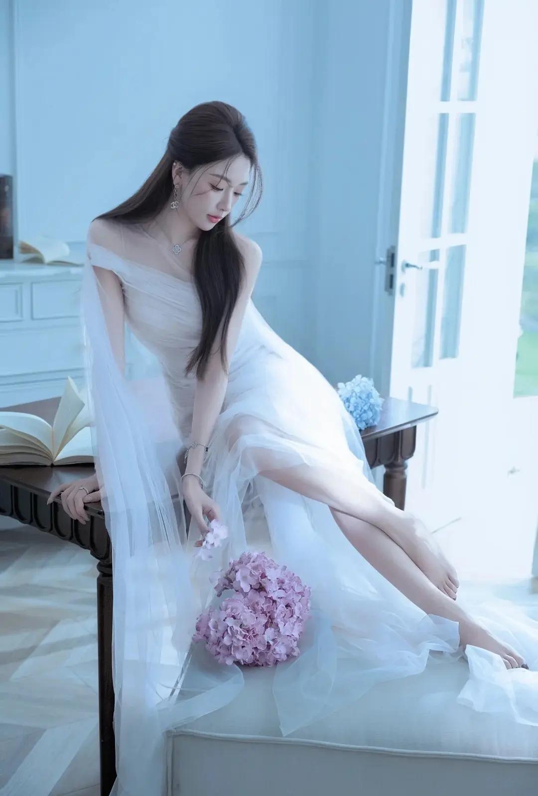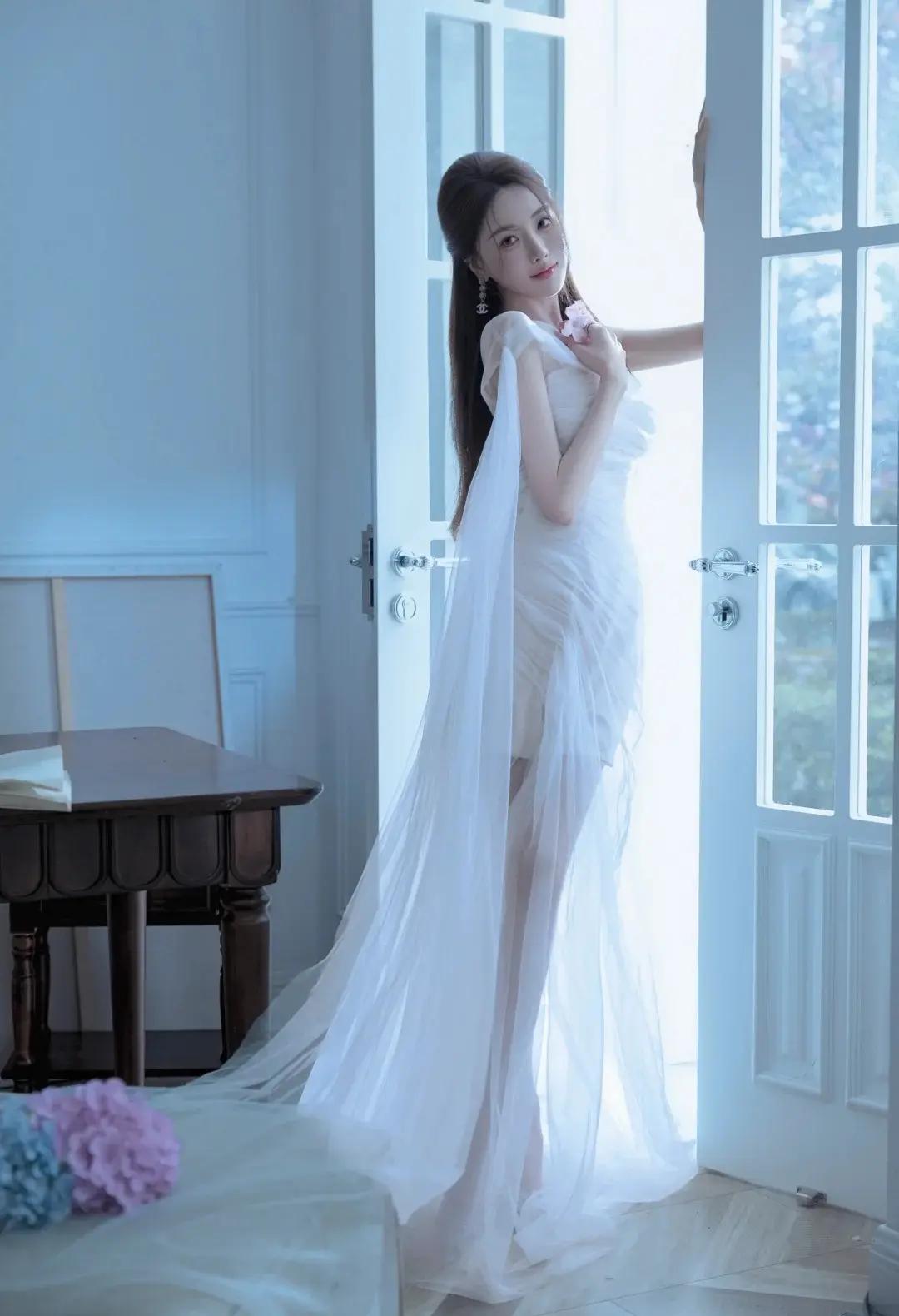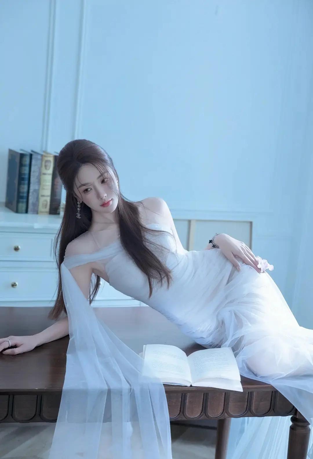午后的阳光斜斜地穿过薄纱窗帘,在米白色墙面上晕染出朦胧的光斑。苏念端坐在丝绒扶手椅上,象牙白真丝长裙垂落如月光织就的瀑布,裙摆处手工刺绣的铃兰暗纹在光线流转间若隐若现。她微微侧首时,及腰的乌发在肩头漾开墨色涟漪,发丝间藏着的茉莉精油气息与室内若有若无的白茶香氛悄然相遇。 "这束光来得正好。"她抬手整理耳际碎发,腕间鎏金手链忽然在阳光下苏醒。链坠是朵永不凋谢的玫瑰,花瓣上凝结的晨露实则是镶嵌其间的碎钻,此刻正将斜射的光线折射成七彩虹霓,在素色墙面上绘出瞬息万变的抽象画。当目光掠过无名指上的铂金素圈,戒圈内侧镌刻的纪念日忽然变得灼热——那是去年深秋在京都琉璃光院,枫叶飘落茶盏时定格的永恒。 背景墙的莫兰迪色块开始流动,将整个空间晕染成水彩画。苏念起身时裙裾掠过波斯地毯,惊醒了沉睡在经纬间的古老传说。角落里的白瓷花瓶微微颤动,三支粉色郁金香忽然舒展花瓣,花蕊间渗出的蜜香与裙摆的铃兰刺绣完成一场跨物种的私语。她忽然听见时光褶皱里的回响:二十年前的春日午后,母亲穿着同色系旗袍坐在老洋房飘窗边,胸前的翡翠胸针与此刻她颈间的花朵吊坠在时空中遥相呼应。 当云层遮住太阳的刹那,室内光线忽然变得暧昧。苏念赤足踩过冰凉的大理石地面,足踝处的银链在阴影中泛起微光。镜面装饰墙突然映出平行时空:穿同款白裙的少女正在美术馆临摹莫奈的睡莲,她腕间的古董怀表与苏念的手链同时泛起幽蓝光芒。此刻两个时空的铃兰暗纹开始生长,藤蔓穿透镜面缠绕在一起,在现实与虚幻之间架起虹桥。 暮色漫入窗棂时,苏念将铂金戒指调整了十五度。这个角度恰好能让最后一缕夕阳穿过戒圈,在墙面投下完美的光轮。当她的身影与逐渐黯淡的光斑完全重叠,整袭白裙突然泛起珍珠母贝的光泽,宛如月光女神褪下人间的衣裳。此刻墙角的郁金香悄然绽放,花瓣坠地的声响惊醒了时空迷梦——那些流转的光影、暗涌的芬芳与无声的优雅,都在夜色降临前凝结成永恒的诗行。