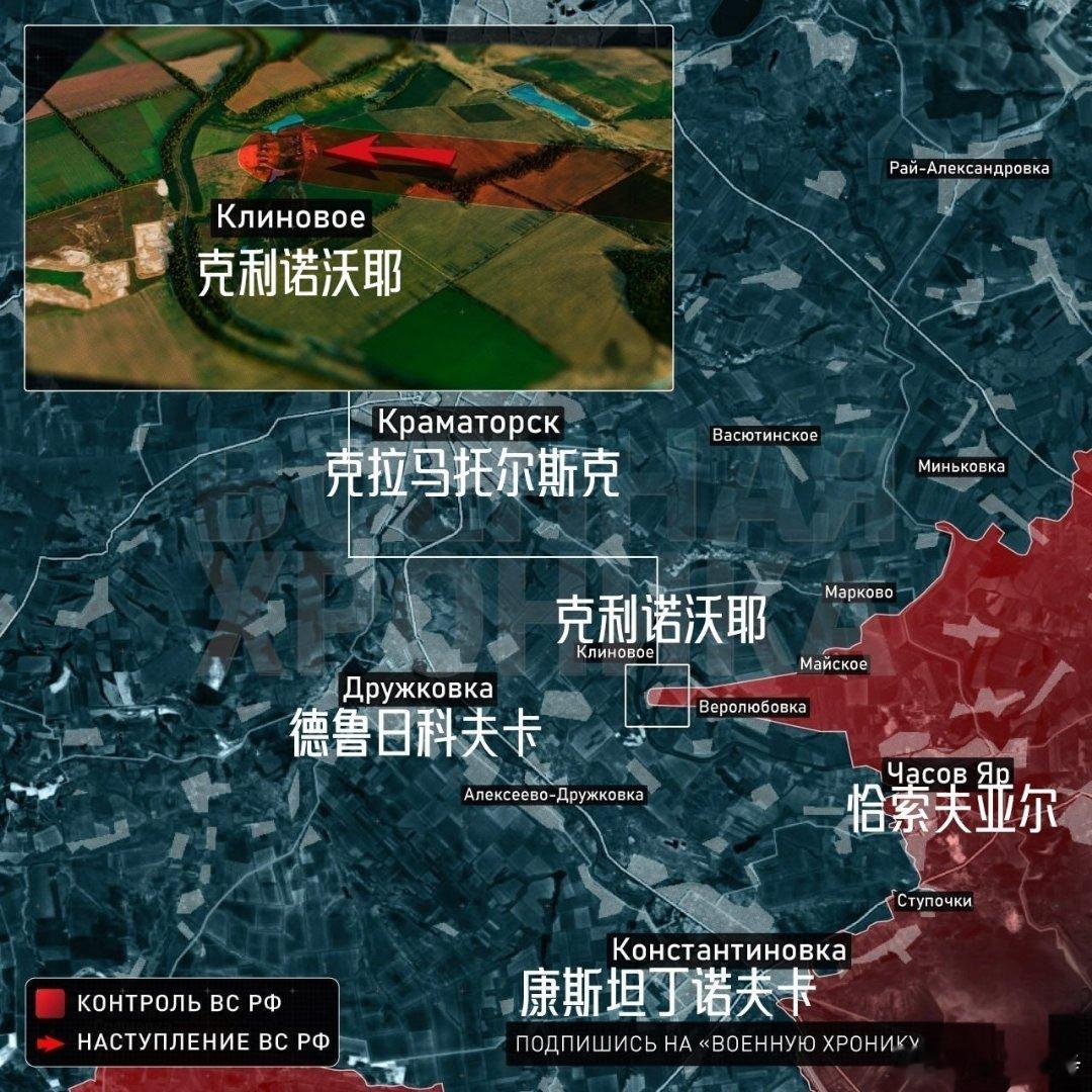 俄乌风云录,偷袭。俄南部军区占领了克利诺沃耶村。看上去是一个不起眼的小村庄,但难掩其重要性。它开启了通过通往德鲁日科夫卡的入口,可以从南线对克拉马托尔斯克施加压力,同时切断康斯坦丁诺夫卡补给线。目前俄军还需要越过铁路线,突进六公里,就能到达德鲁日科夫卡。西尔斯基估计会重兵阻击俄军,如果让俄军站住脚,并进军到德鲁日科夫卡,可就大事不妙了。国际军事俄罗斯乌克兰冲突