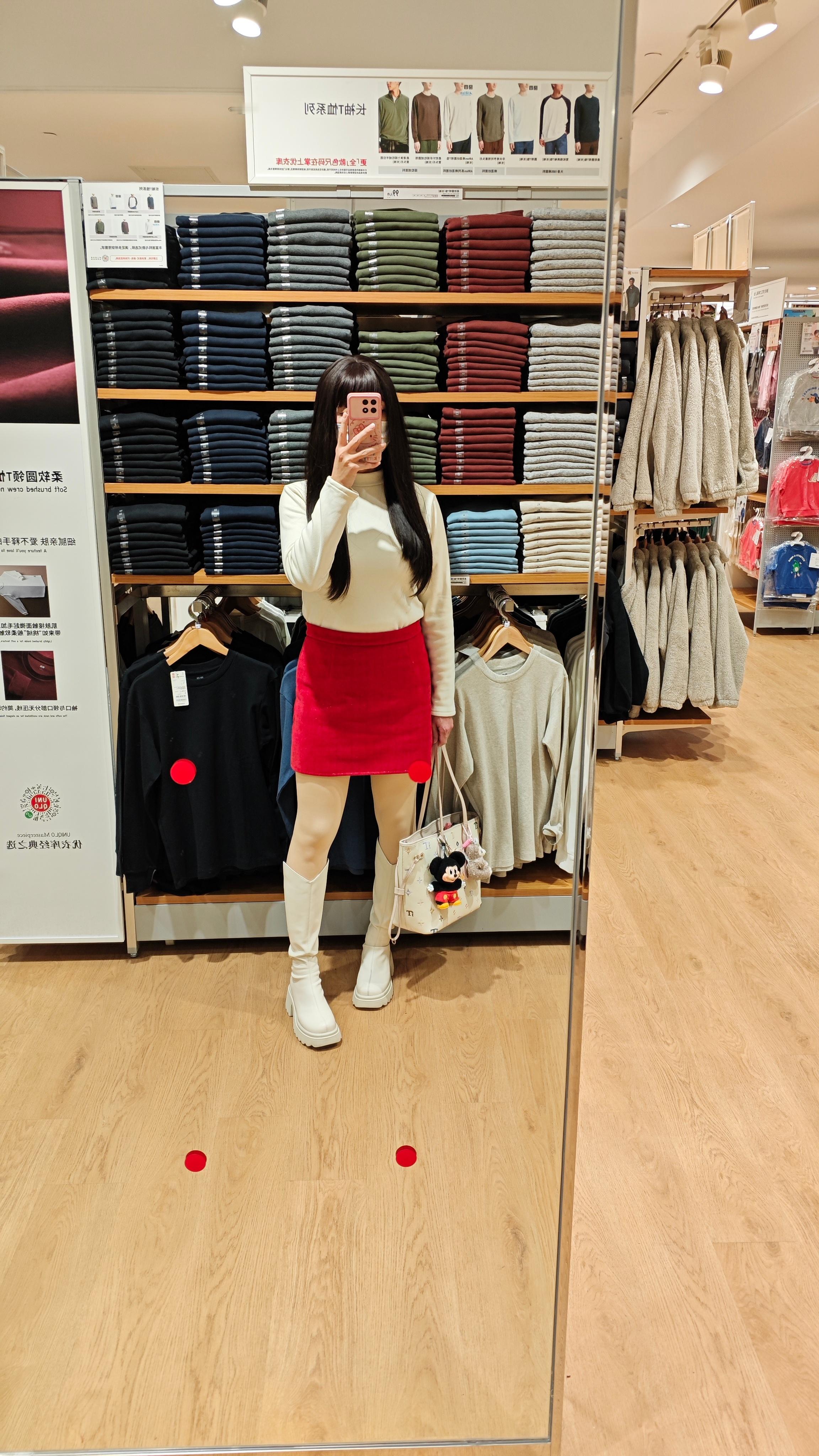 晚上去了王府中环,本来是想去拍圣诞布景的,但亲眼见到后发现小的可怜,跟去年比逊色了不少,太让人失望了。商场外面有一个临时的巴宝瑞的溜冰场,还挺好看的~今天穿得白色打底衫,很有圣诞氛围感的红色窄裙,光腿神器和白色筒靴,外面是羽绒胆的毛呢大衣。 北京·王府中环