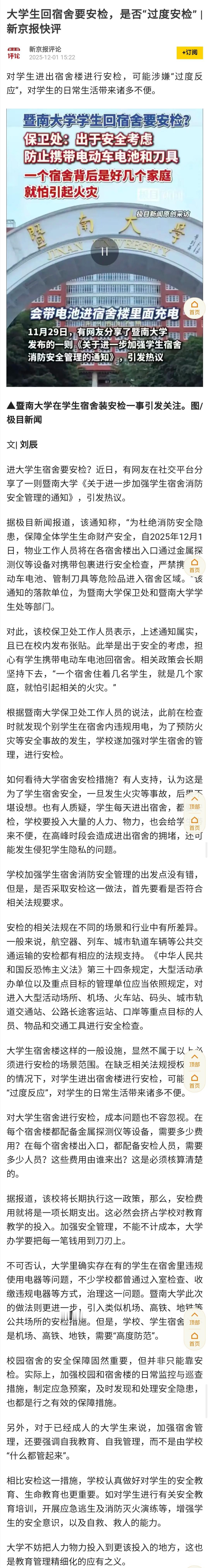 暨南大学学生宿舍实行安检,看看一些网友对此事的反应,过度安检在他们看来,是对学生负责。那么,按照这种逻辑,大学有对外不设限开放可能吗?