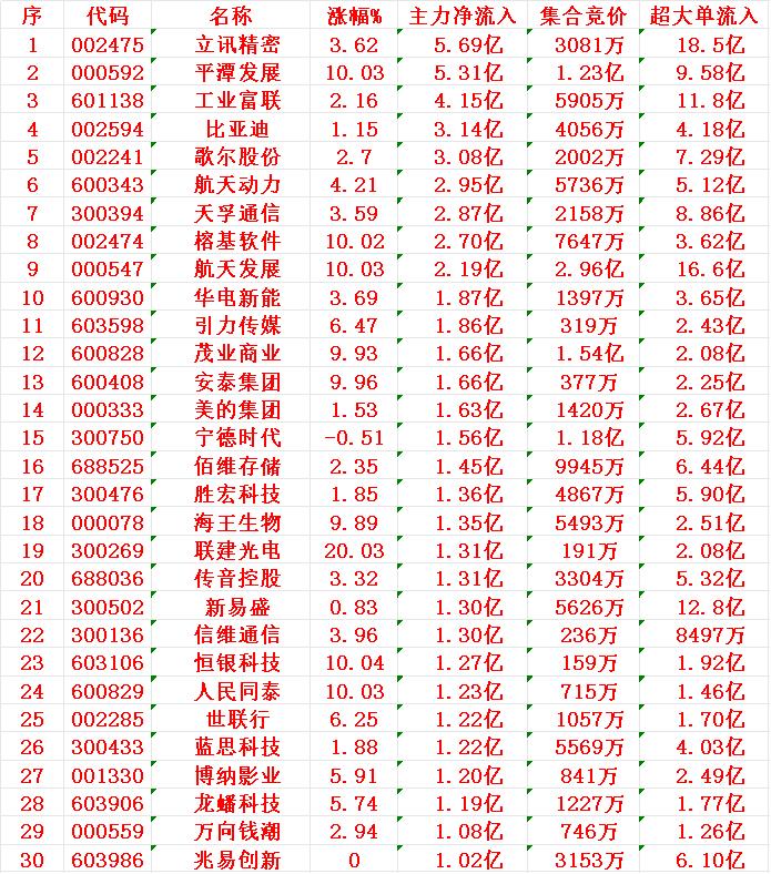 12月2日开盘45分钟,主力资金“买入的 ”的30名单一览! 立讯精密:净流入 5.69亿元 平潭发展:净流入 5.31亿元 工业富联:净流入 4.15亿元 比亚迪:净流入 3.14亿元 歌尔股份:净流入 3.08亿元