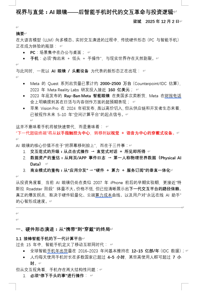 第10篇小作文出炉了,这次谈谈AI眼镜的发展前景。安排下分发。
