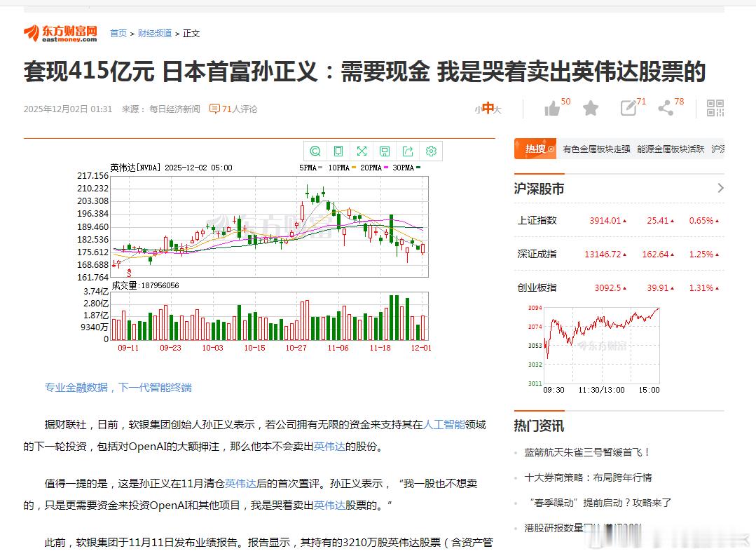 孙正义,卖出英伟达不是因为看空,是因为缺钱。股票 财经