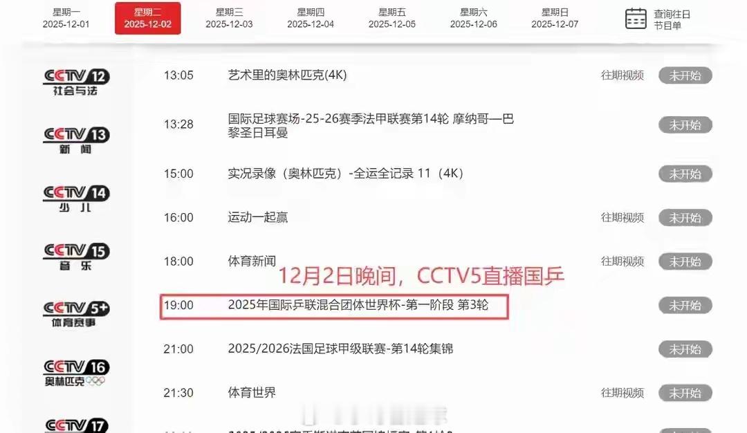 12月2日19点,中央5台将直播成都混团世界杯国乒对阵智利的比赛。国乒前两战全胜提前出线,此役虽对手实力有限,但意在为洛杉矶奥运新规则练兵,测试双打配合与阵容适配度。赛事积分达2500分含金量十足,国乒通过变阵锤炼年轻选手、磨合阵容,剑指小组赛三连胜与赛事三连冠。