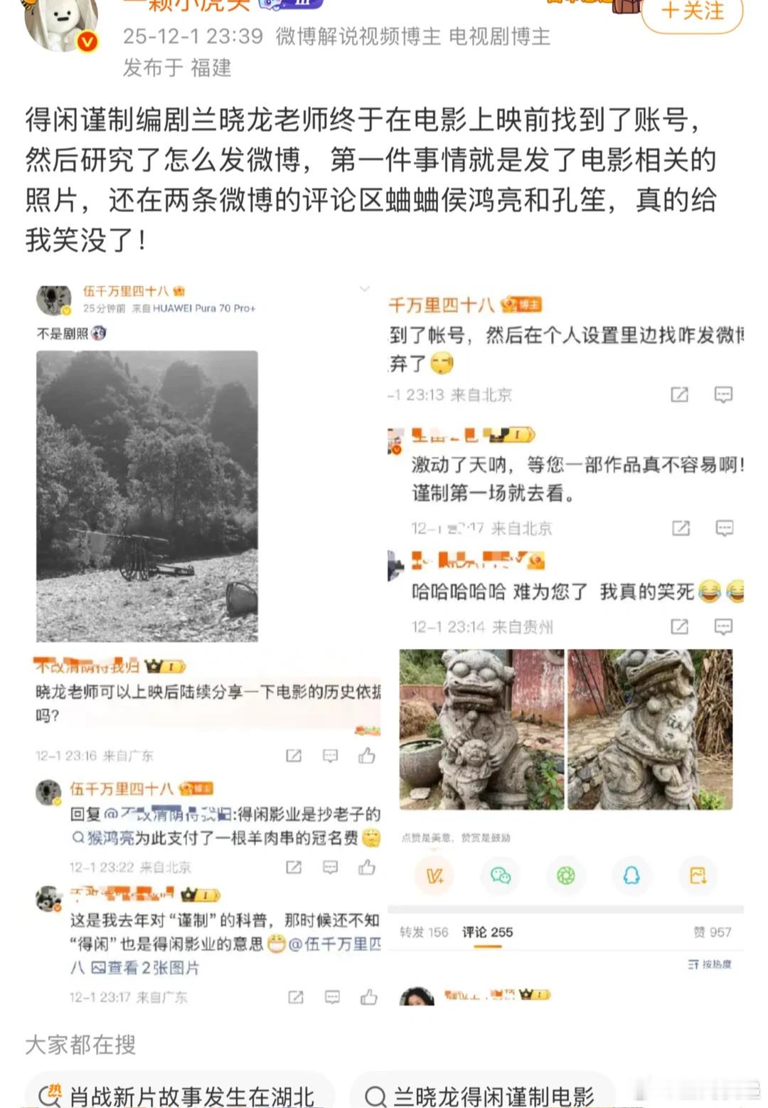得闲谨制编剧兰晓龙老师终于在电影上映前找到了账号,然后研究了怎么发微博,第一件事