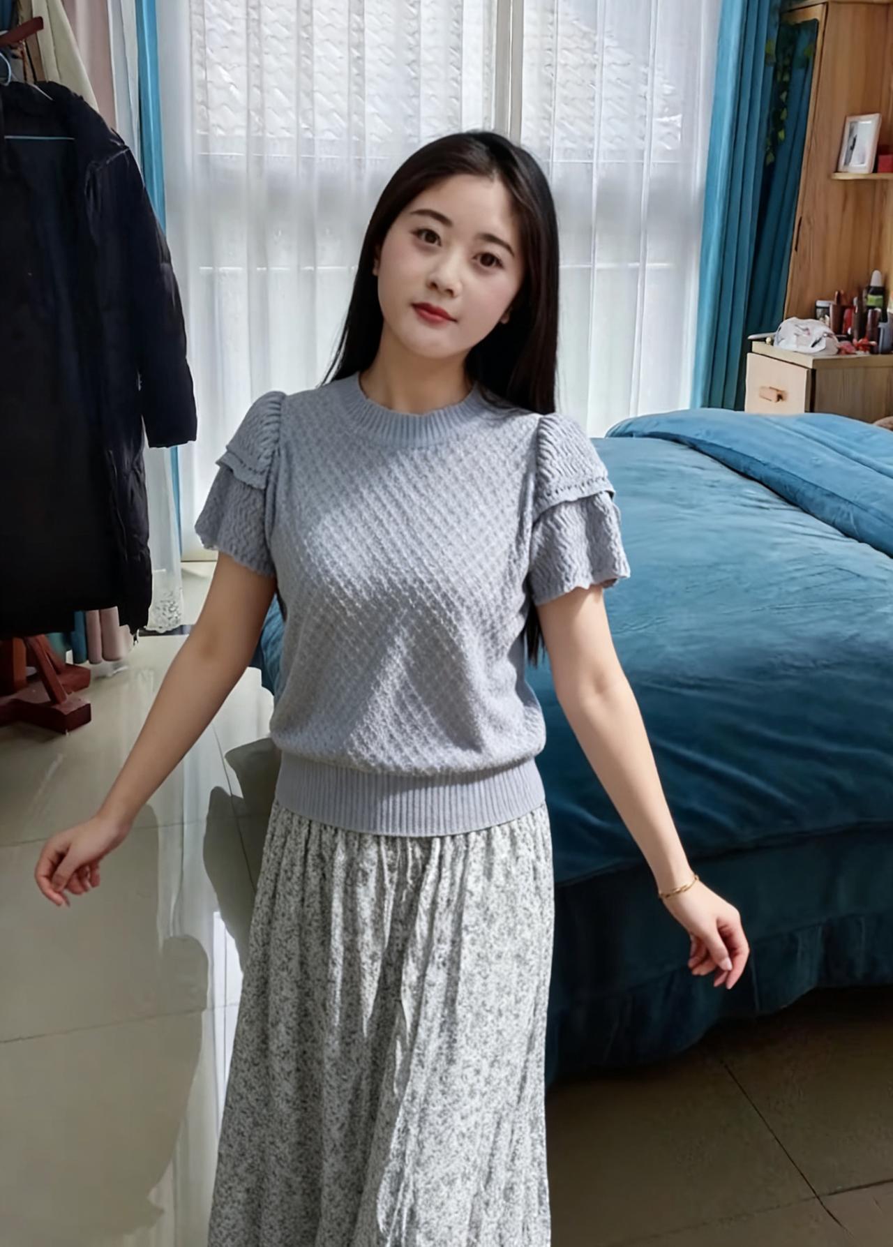 她站在那里,像一阵静止的风 灰蓝的衣衫是风的颜色 裙摆是风的形状,在空气里舒展 却没有一丝流动的痕迹 ~ 她的手臂微摆,指尖轻触空气 仿佛在触摸一个不存在的你 她的眼神,是一片空白的纸 等着有人来写下第一个字 ~ 房间里很安静,只有风在呼吸 她的心跳,是唯一的声响 在这片寂静里,她是唯一的光 照亮了整个房间的空旷