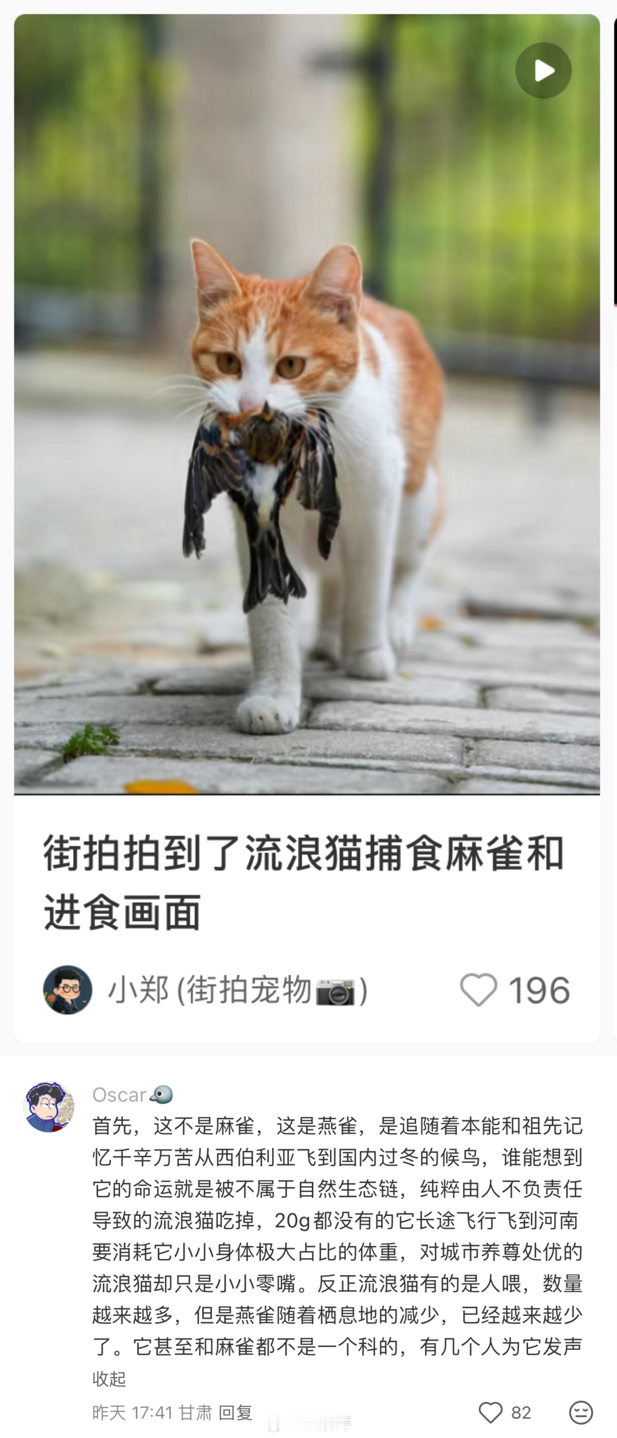 追随着本能和祖先记忆千辛万苦从西伯利亚飞到国内准备过冬,然后就被流浪猫杀了