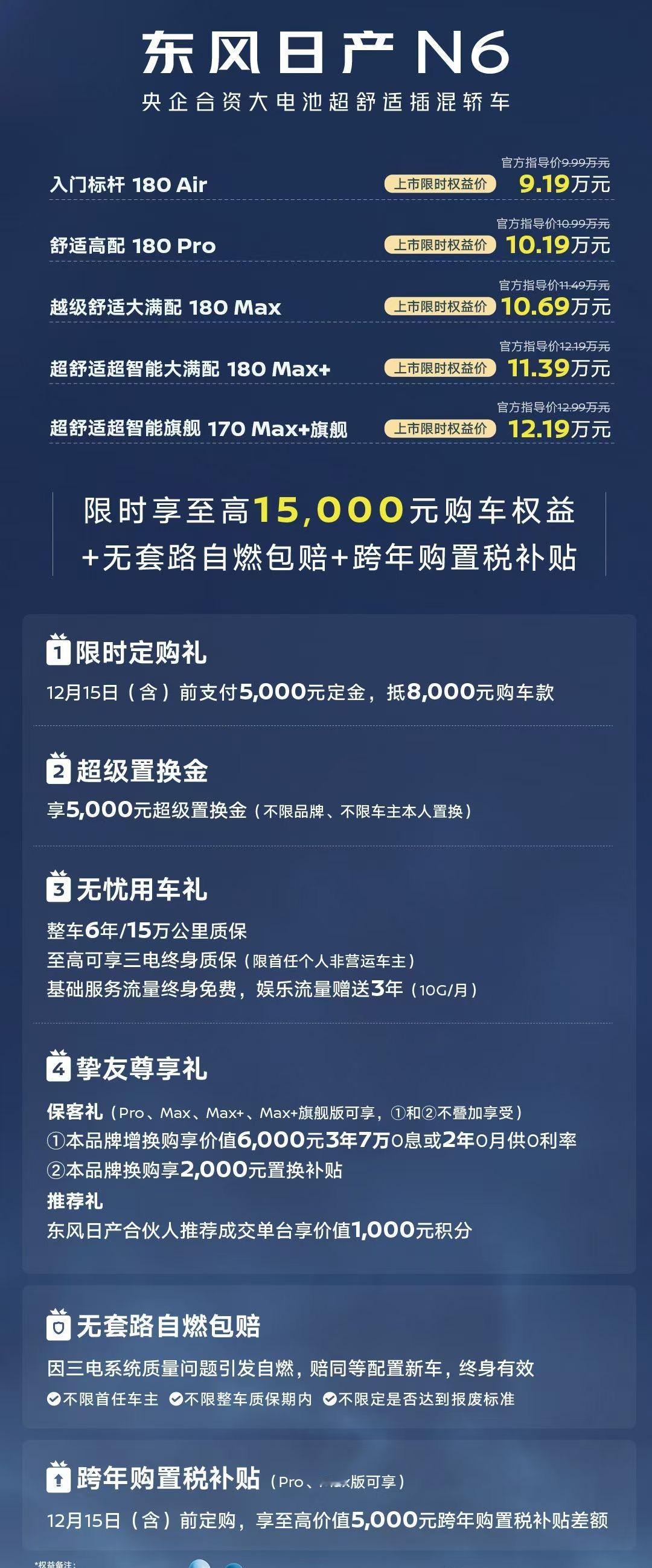 四个2两个王N6叫地主东风日产所指两个王——颜值和舒适;四个二——油耗2字头、电池20度+、补能20分钟、年成本2000元;从车型五个配置看,9.19万到12.19万都会有特定的人群,如果预算够11.39万的Max➕版本最具性价比,有MMT驾驶辅助大v聊车