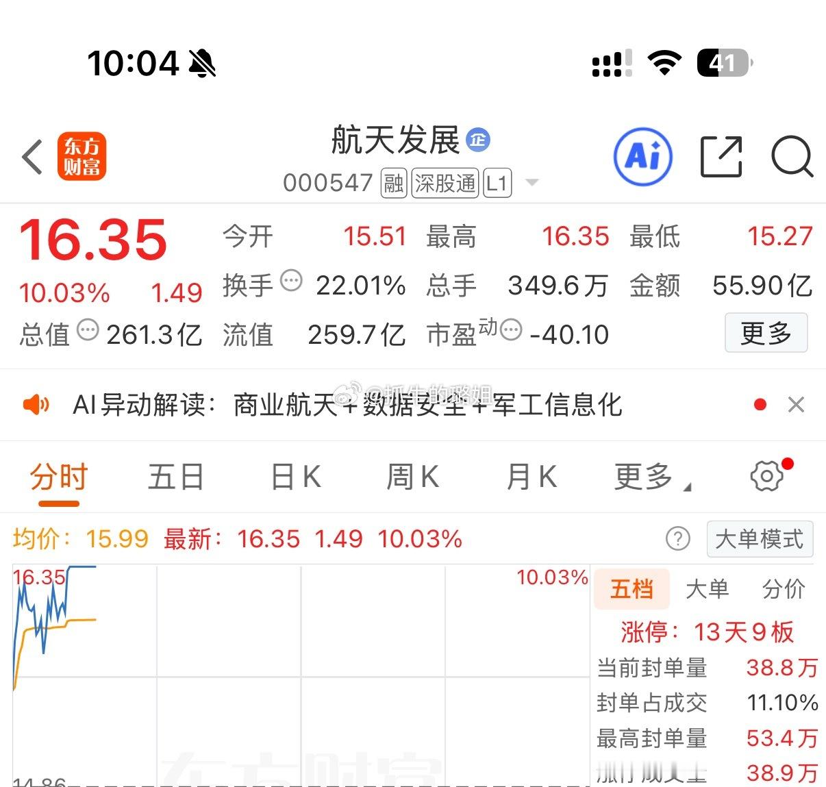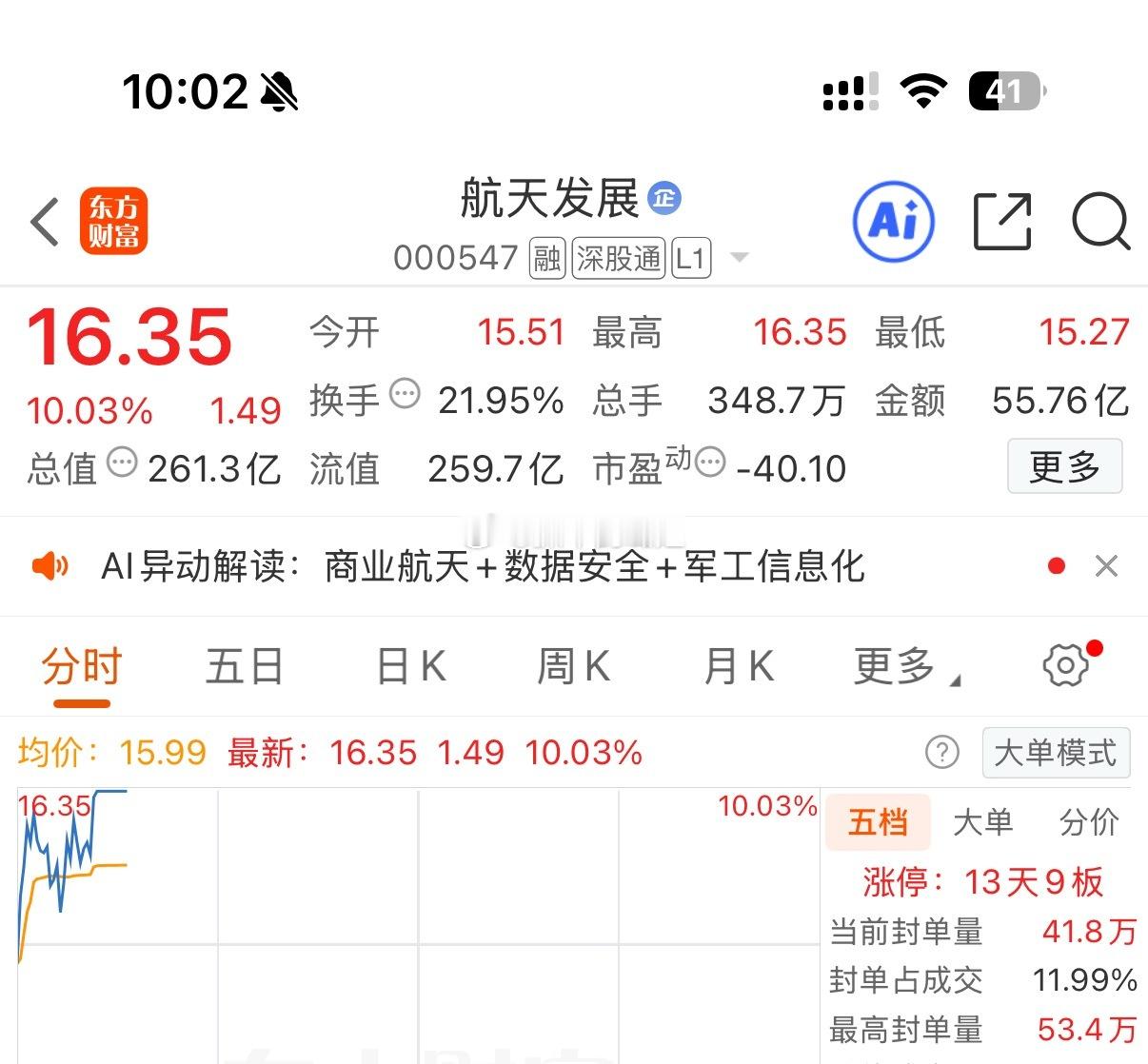 家人们,$航天发展 sz000547$ 强势晋级三连板,还在车上的继续格局