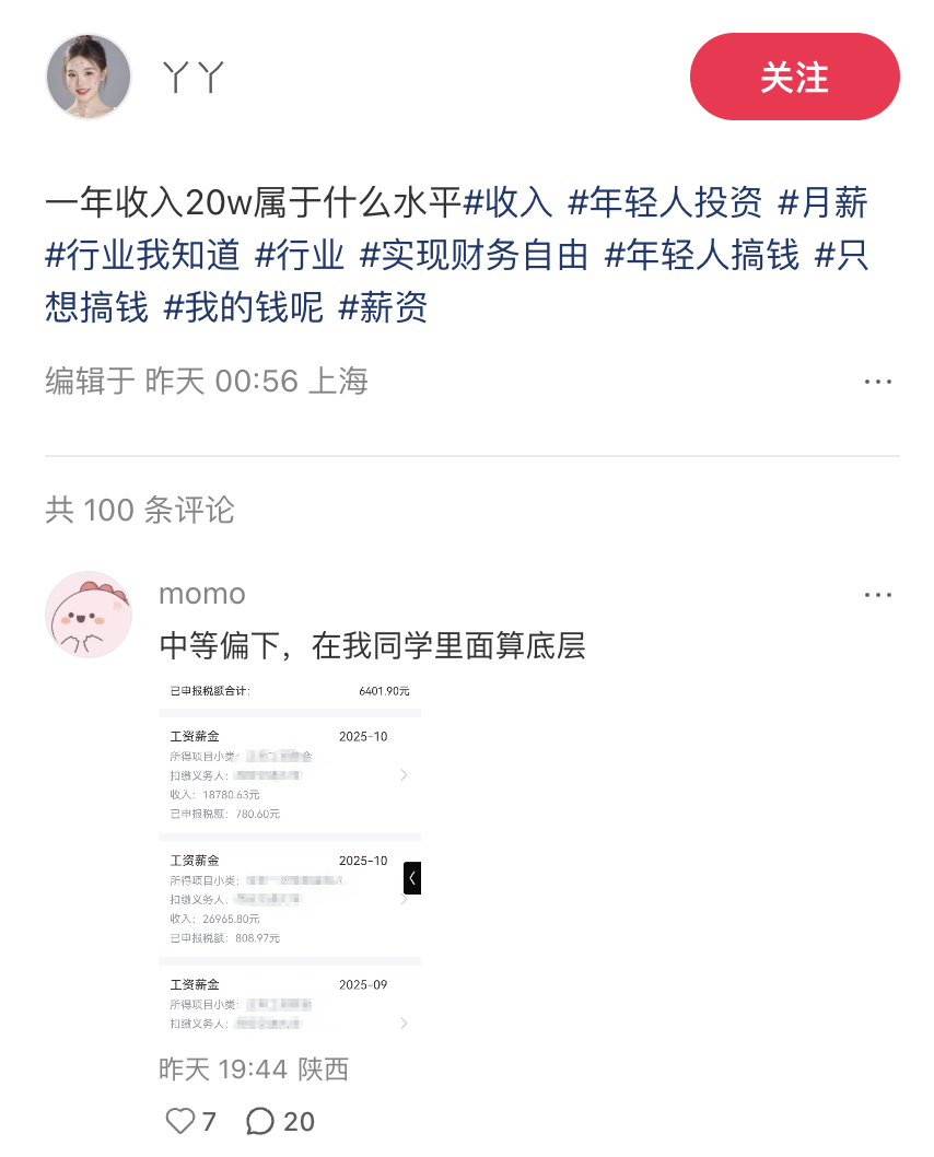 一年收入20w属于什么水平?中等偏下,在我同学里面算底层