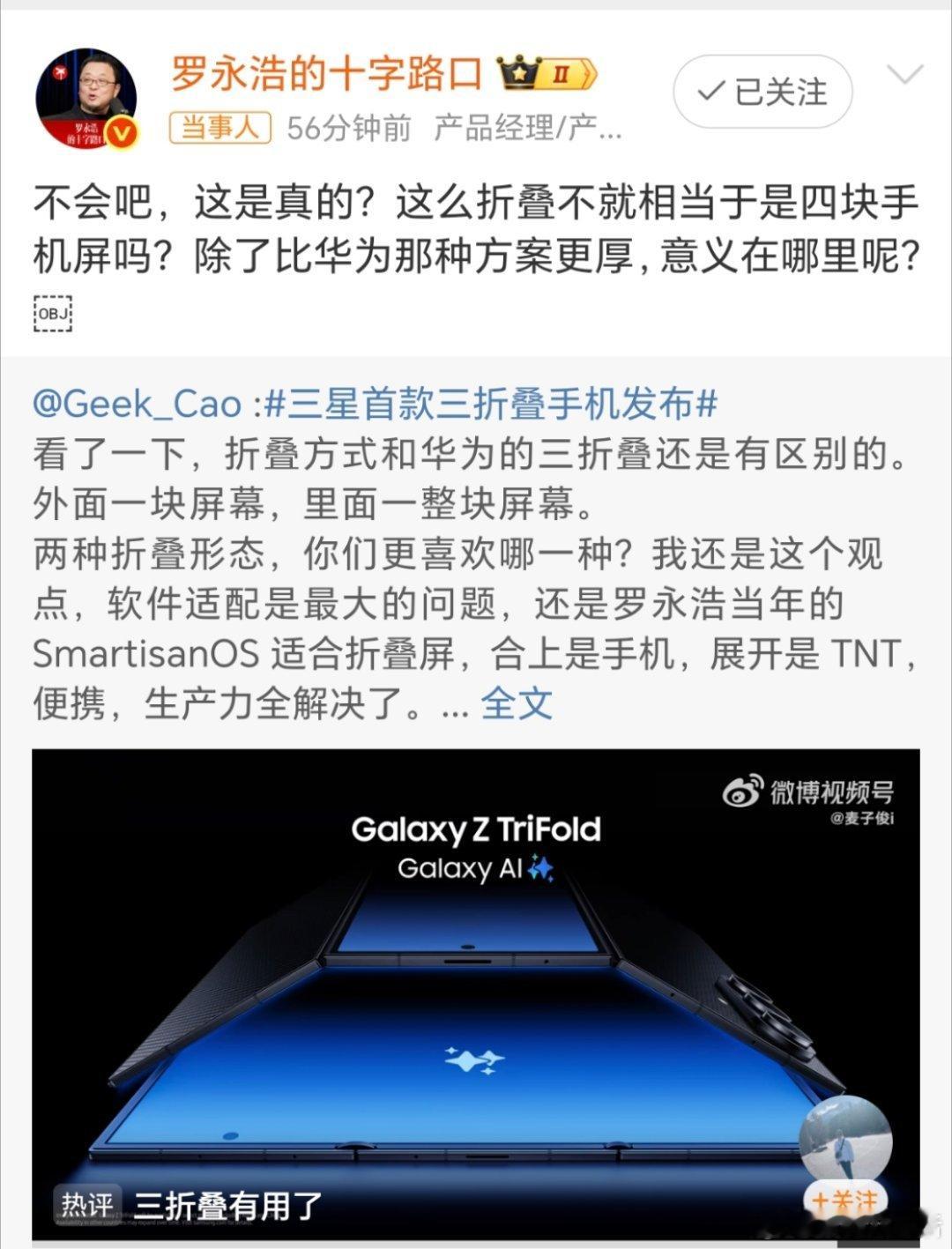 罗永浩谈三星三折叠 我觉得罗老师说的有道理!