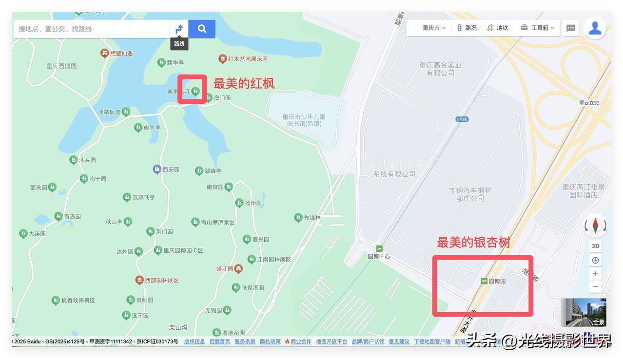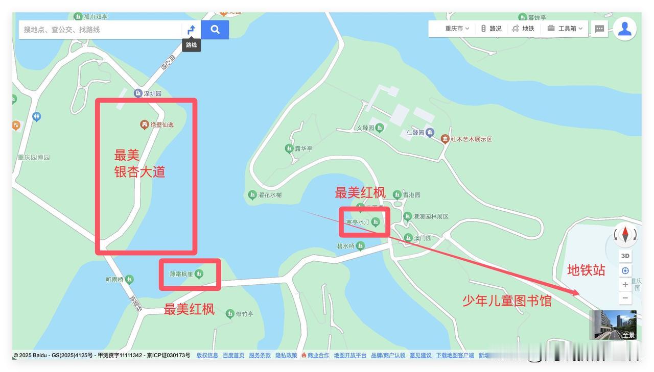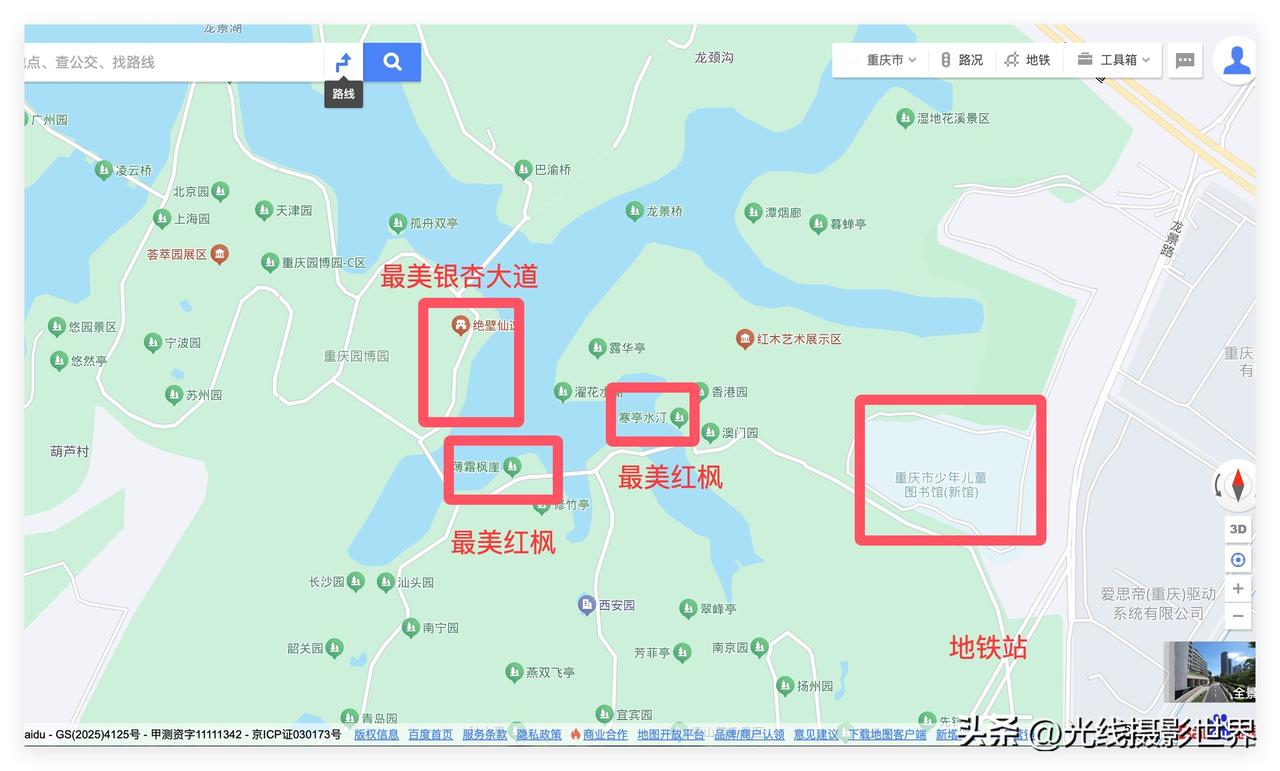 重庆园博园,银杏,红枫,最美的拍摄点位在哪里呢?!2025年秋天,11月底12月初,大概有4个最佳拍摄点位:1,轻轨三号线,重庆园博园地铁站,这里是拍摄银杏树。2,澳门园的湖边,有几颗非常美的红枫,这是最美红枫的点位之一。3,秋亭桥到听雨桥这边,也有几颗非常美的红枫,这是最美红枫的点位之三。 4,听雨桥到同心桥,这是重庆园博园里面的最美的银杏大道…… 5,在北京园天津园和重云塔,也就是重庆园博园的标准塔这里,可以俯瞰园博园的秋色满园。 6,在风雨廊桥或者周边,可以看到金光穿洞,暖色调,也显得秋色浓郁。 只可惜,12月2日到4日,重庆降雨降温,天气不好……等到12月5日6日重庆出太阳,重庆园博园的银杏树应该都光秃秃了,哎! 那就期待2026年秋天的重庆园博园吧! 总体来说,重庆园博园的秋天秋色,确实越来越美了!