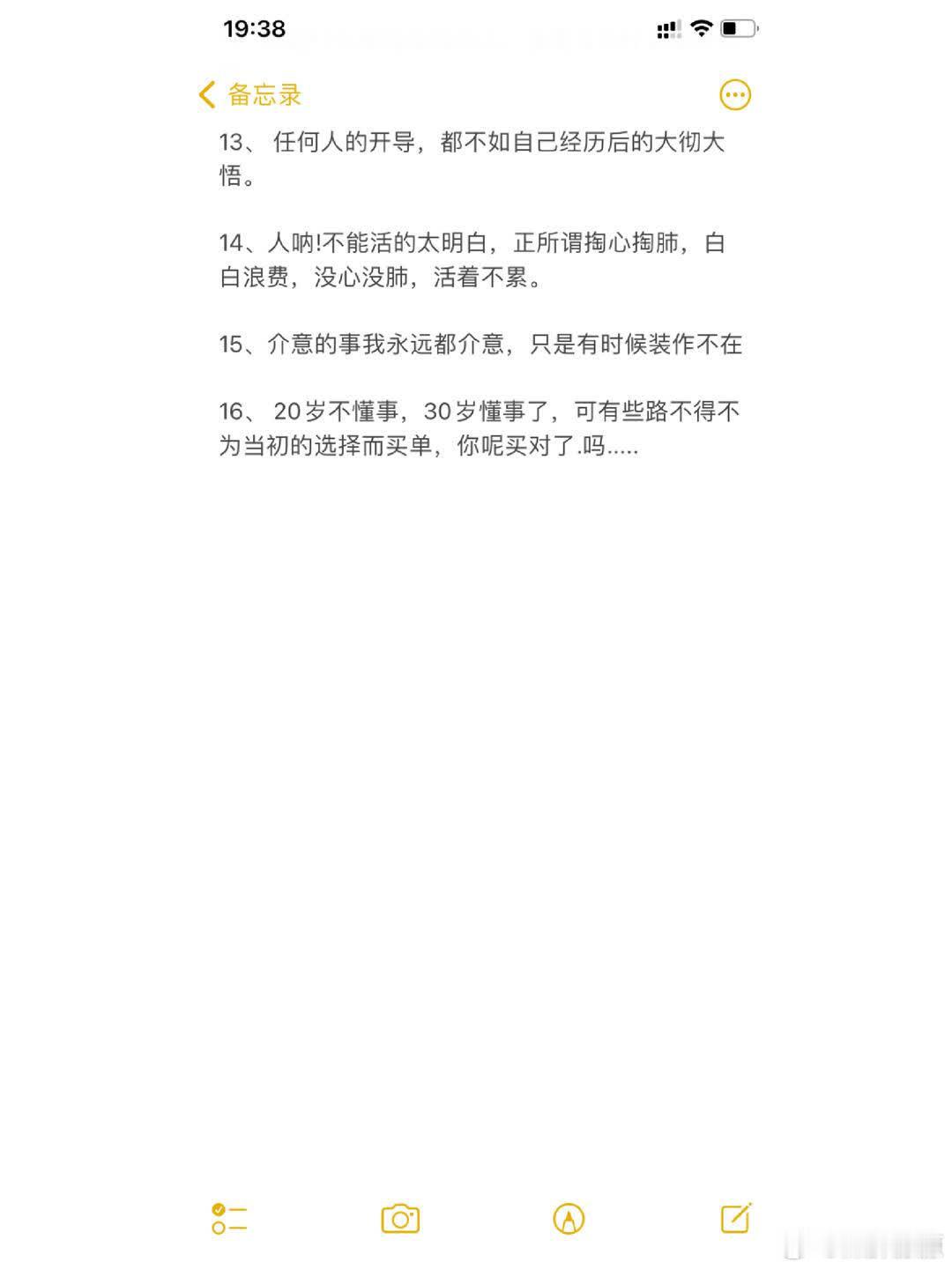 突然破防句句心疼 “突然破防句句心疼” 1、晚风吹人醒,万事藏于心。我没说不公平,也没说苦,我说我知道了。 2、人心各有所感,角度不同,又怎么能相互理解? 3、如果有幸被人看穿脆弱,我一定好好撒个娇。 4、我知天高任鸟飞,也知话说三遍淡如水,所以从此山水一程,再不相逢。 5、你若懂,无需千言万语,若不懂,万语千言道不 6、我很清醒,但我不够狠心,心软是我最大的败笔。 7、日落归山海,山海藏深意,没有人不遗憾,只是有人不喊疼。 8、喜欢的东西依旧喜欢,但不想再拥有了。 9、烟火人间,各有遗憾,有一种累,无人可说,无 10、 刚开始什么都好,到最后才发现,不开始最好。 11、比起什么都能给我的人,我更喜欢什么都给我的 13、 任何人的开导,都不如自己经历后的大彻大悟。 14、人呐!不能活的太明白,正所谓掏心掏肺,白白浪费,没心没肺,活着不累。 15、介意的事我永远都介意,只是有时候装作不在 16、 20岁不懂事,30岁懂事了,可有些路不得不为当初的选择而买单,你呢买对了.吗.....