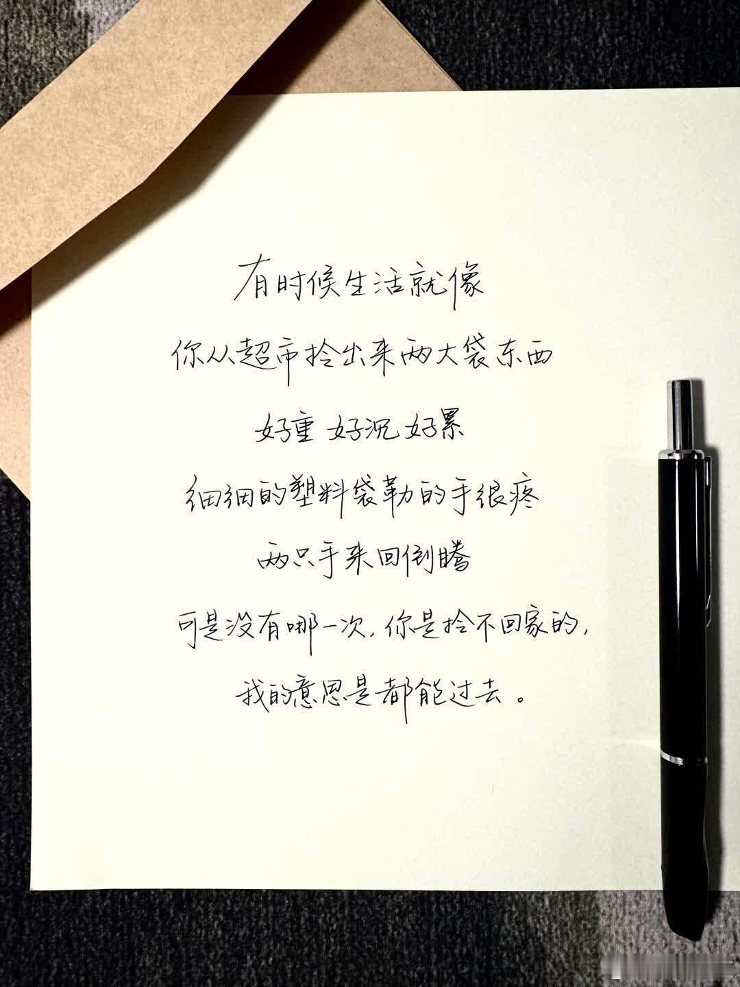 你一定可以拎的起生活的重量 有时候生活就像 你从超市拎出来两大袋东西 好重 好沉 好累 细细的塑料袋勒的手很疼 两只手来回倒腾 可是没有哪一次,你是拎不回家的, 我的意思是都能过去。
