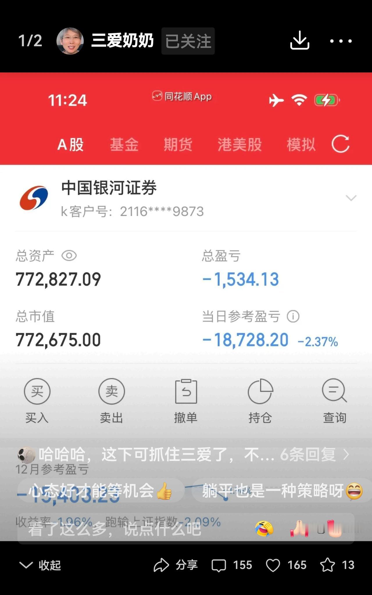 昨天庄家就知晓奶奶您中了500万,还能拿去补仓。股市就像是奶奶心情的晴雨表,涨了便高兴,亏了就沮丧,这真是一个愿打一个愿挨。昨天的美梦又成了泡影,还是亏了,那就喝吧!等您睡个午觉,说不定美梦就成真了。