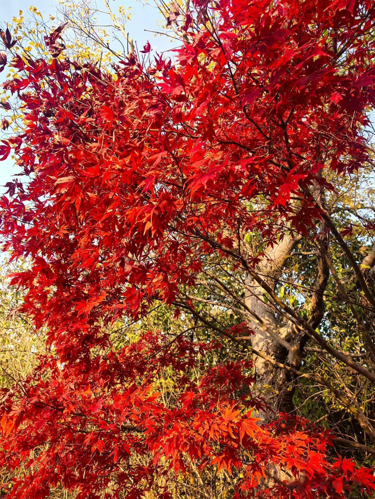 秋意渐浓,红叶如火,静谧湖畔,心旷神怡。