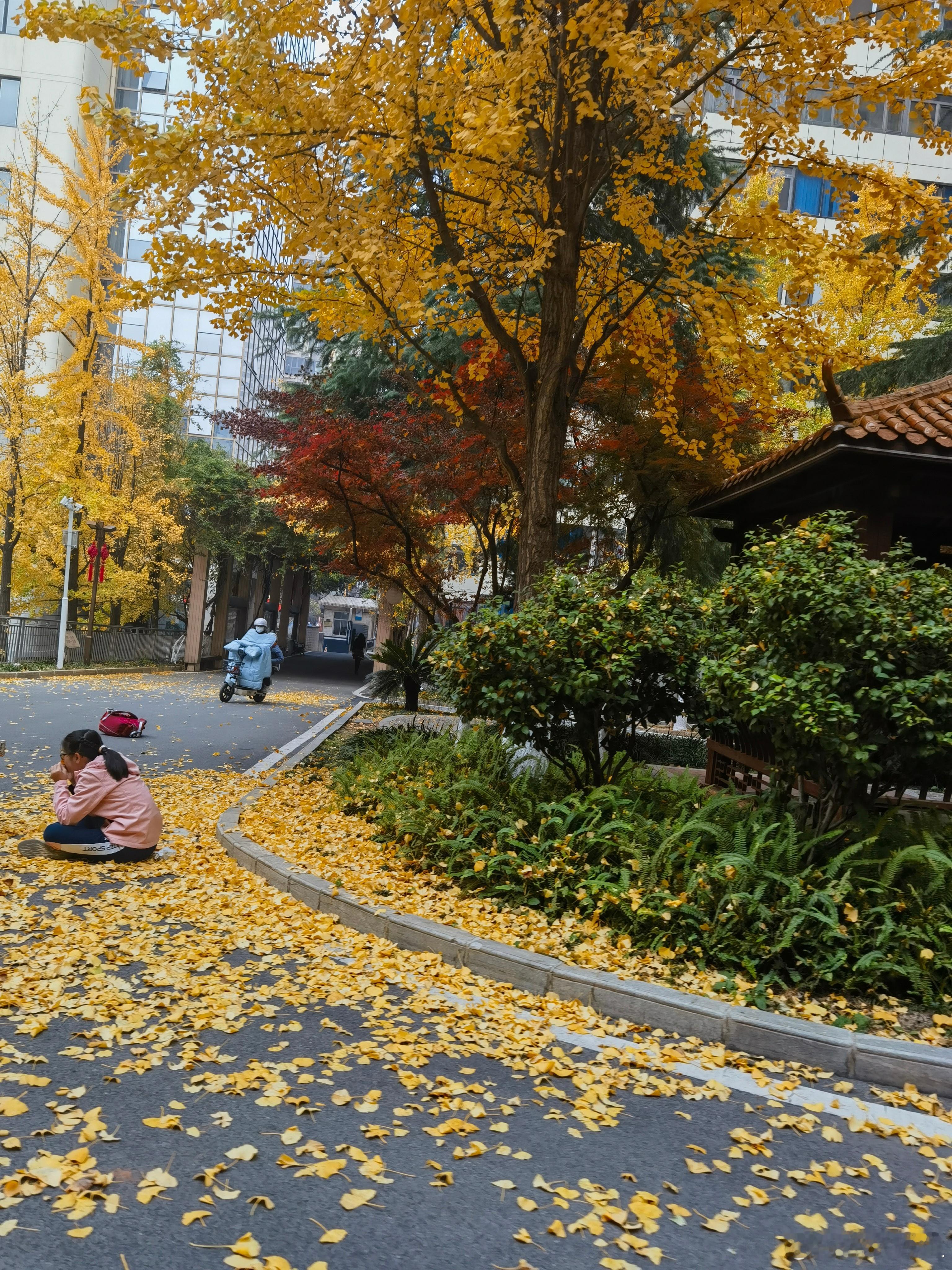 银杏枝头金蝶闹夜读倦时,忽觉窗纸澄澄然。推扉视之,乃庭前银杏尽染金甲矣。风过处,非复昨日青翠飒飒声,转作碎玉轻击之音。一枝颤颤,便有三五蝶旋而下,忽东忽西,终泊于苍苔石阶间,叠成秋书扉页。余倚柱观之,叶落何其从容:或斜掠书案,偶驻墨痕未干处;或遥落井阑,竟与苔钱缀作金钿。最是西墙根一带,积叶已盈寸许,仿若地脉自生暖光,连暮色至此亦放缓了脚步——原是天公将岁寒之笔,先润润地濡黄了一砚黄昏。忽忆及去岁扫叶时,曾见嫩芽初破甲。今满目灿然,转瞬却要作空枝听雪矣。然则这遍地金骸,岂非树写给大地的信札?某片叶脉间,或许还蜷着某宵我与客对弈的残局,某缕霜痕里,大抵封存着去夏蝉声的余韵。童子执帚欲扫,余笑止之:“且留片时。待明月浸透这些金箔,或可听见时间落地的声音。”语罢自拾一叶夹入陶集,忽觉书页间漫起千年前某座山寺的秋气。