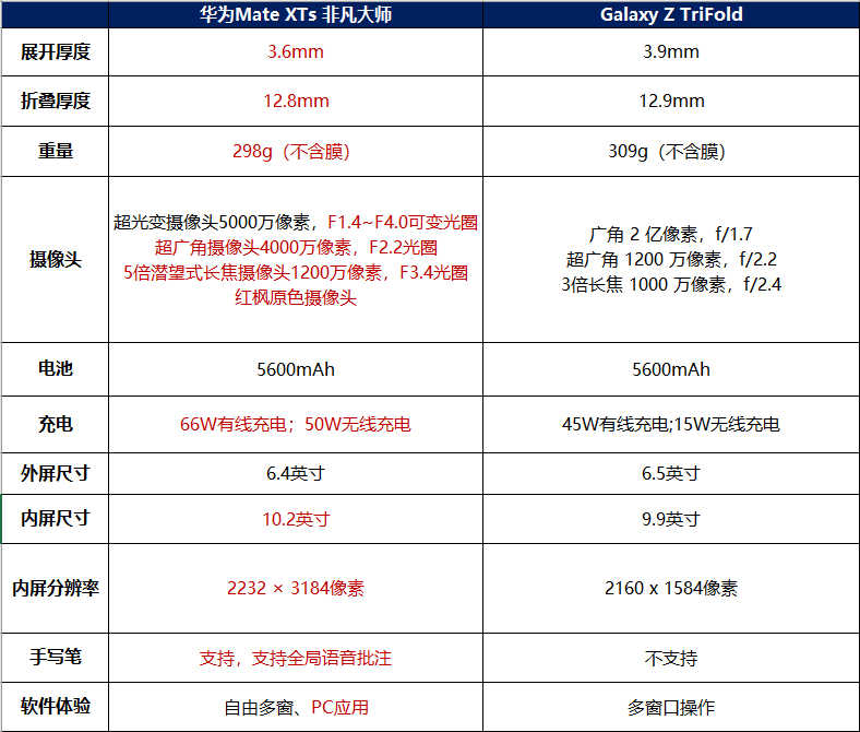 华为三折叠发布两代了,三星三折叠姗姗来迟,三折叠这样的产品还真不是哪个手机厂商都能做的,没有技术积累真不行,苹果大概率也会在26年上双折叠。从参数看,华为三折叠基本上是全方位碾压三星,更轻,拍照更好,支持PC应用,还支持手写笔。这次三星不支持手写笔,实在是不应该啊。三星首款三折叠手机比华为晚一年三星首款三折叠手机发布